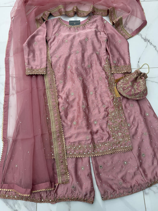 KHUSHI - Embroidered chiffon outfit with plazo