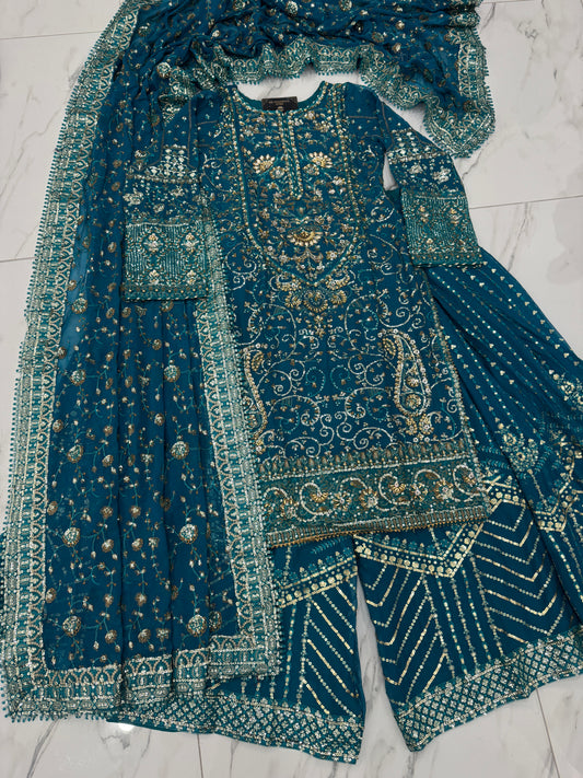 RAHAT - Embroidered chiffon kameez with chiffon sharara and dupatta
