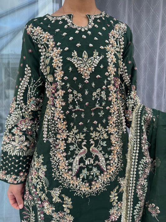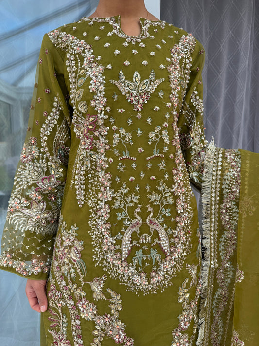 KHAYAAL - Embroidered organza kameez with plazo green