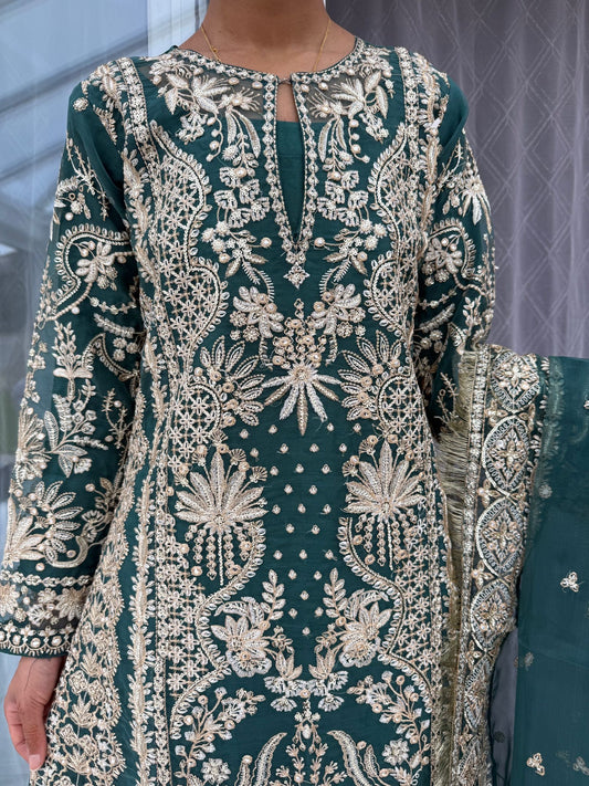 AHANA - Embroidered chiffon kameez with plazo/dupatta