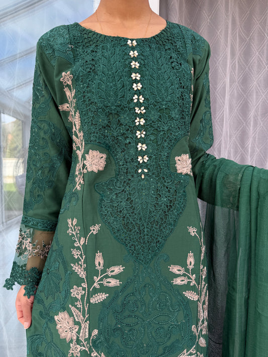 UMAIMA - Luxury embroidered linen kameez with plazo
