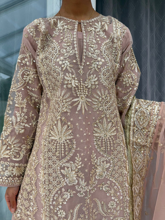IZHAAR GOLD - Embroidered organza outfit with Kali Sharara