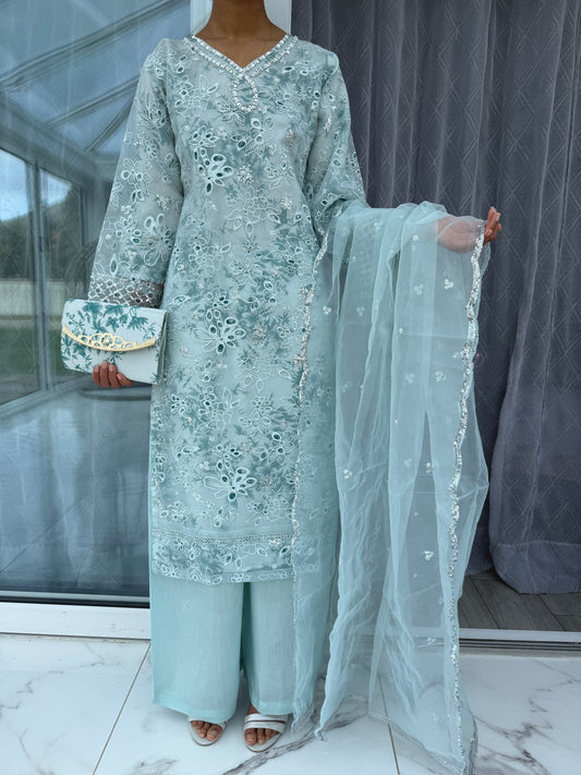 MIA - Mother/daughter embroidered organza kameez with silk lining