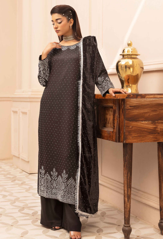 ALAMZEB BLACK - Fully embroidered readymade chiffon maxi party outfit