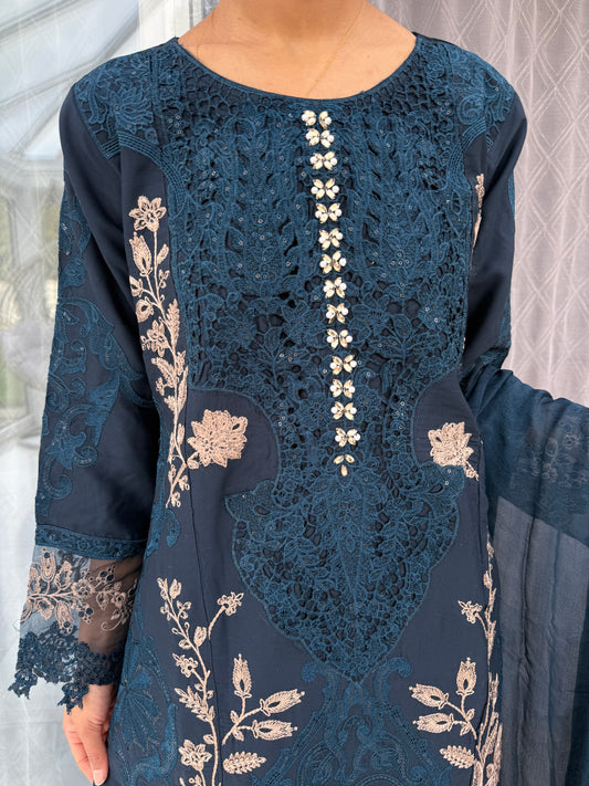 JANNAT NAVY BLUE - Embroidered chiffon kameez with brocade lengha
