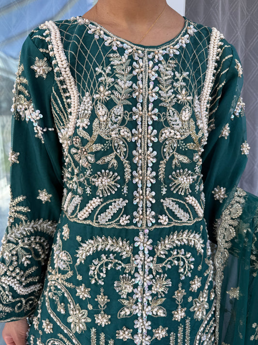 MASTANI - Embroidered chiffon outfit with sharara