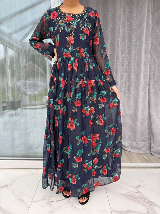 ALAMZEB BLACK - Fully embroidered readymade chiffon maxi party outfit