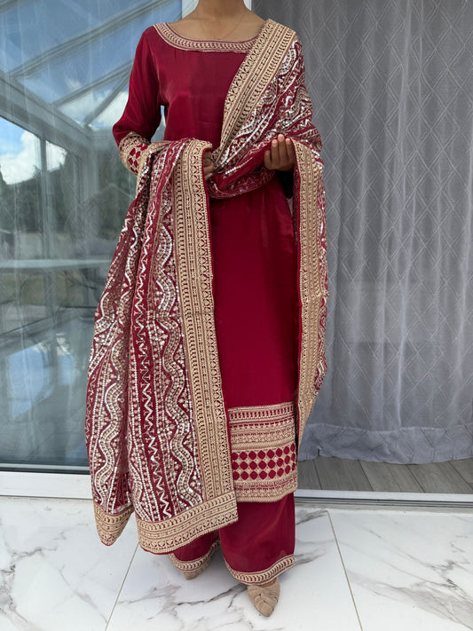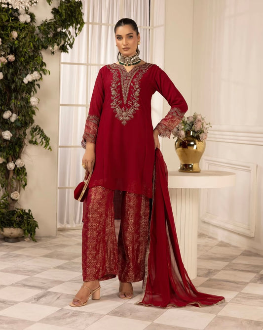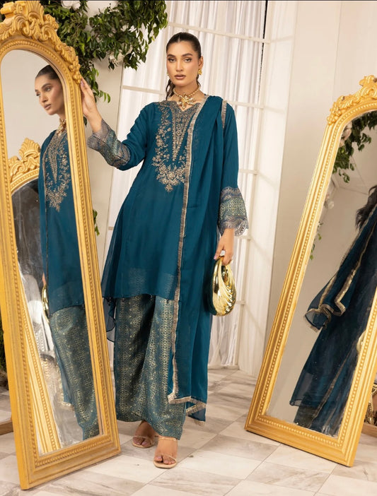 MAHEEN - Embroidered chiffon kameez with embroidered trousers & organza dupatta