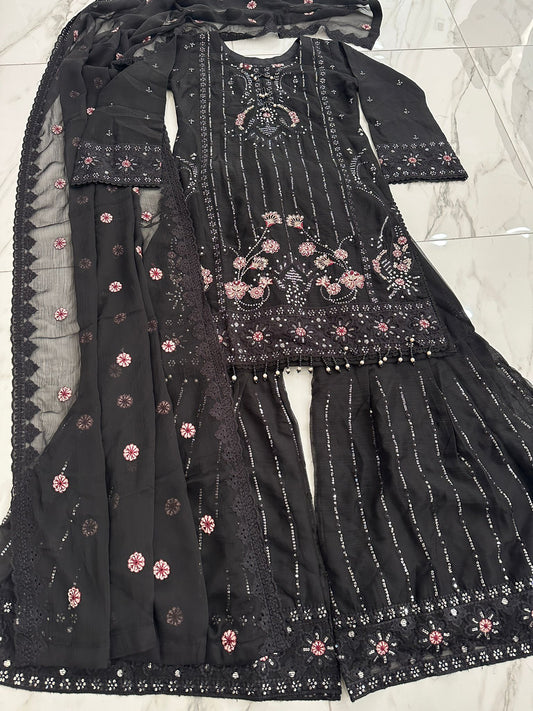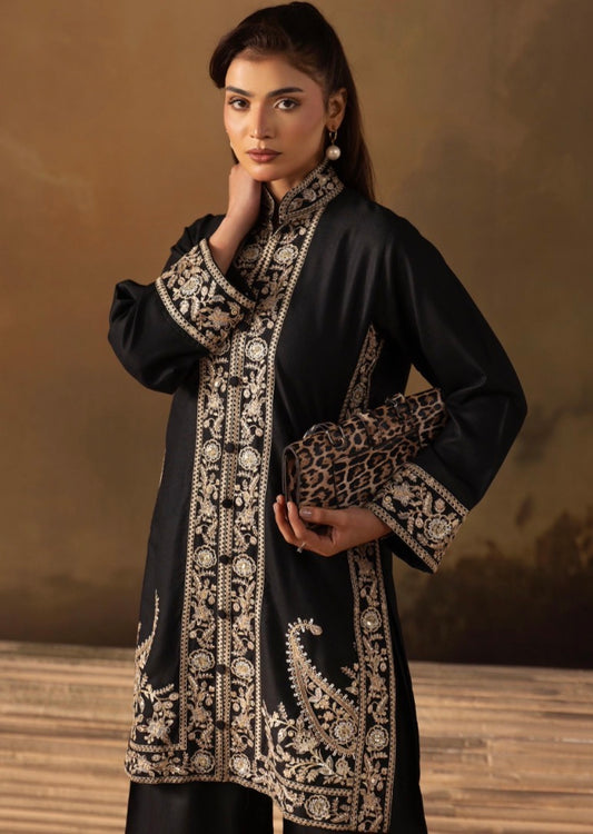 KHAADI COORDS - Embroidered 2 pc Dhanak Khaadi inspired Co-ords Black
