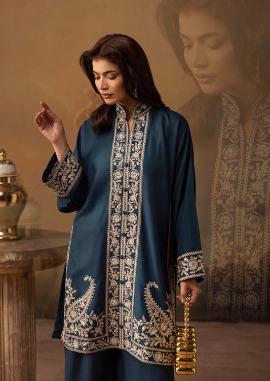 KHAADI COORDS - Embroidered 2 pc Dhanak Khaadi Inspired Co-ords Teal