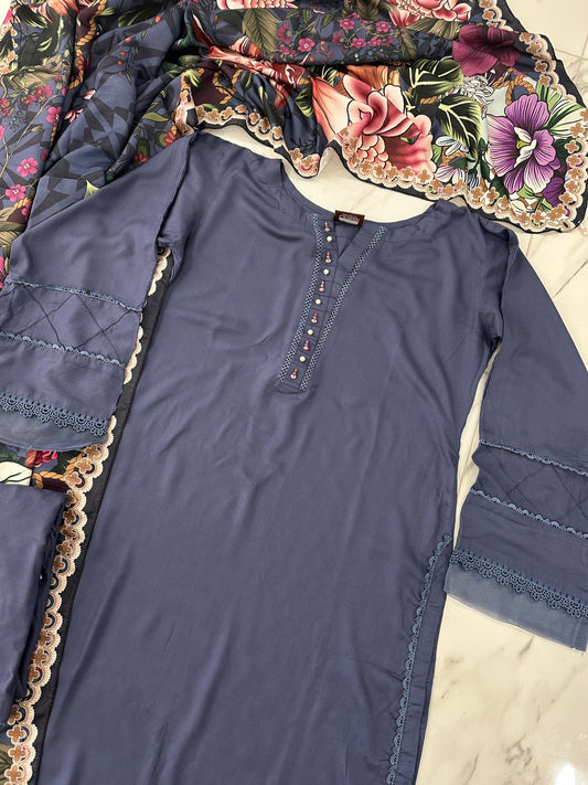 KHAADI COORDS - Embroidered 2 pc Dhanak Khaadi Inspired Co-ords Blue