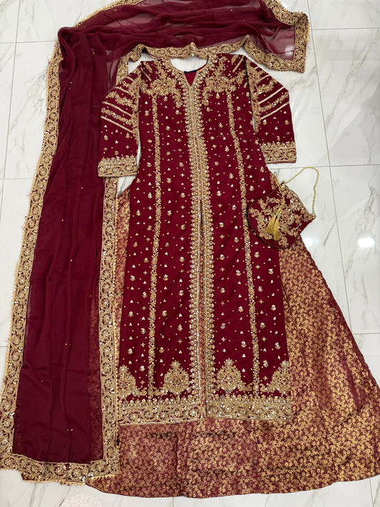 AYAT - Embroidered masoori kameez with pleated Lengha