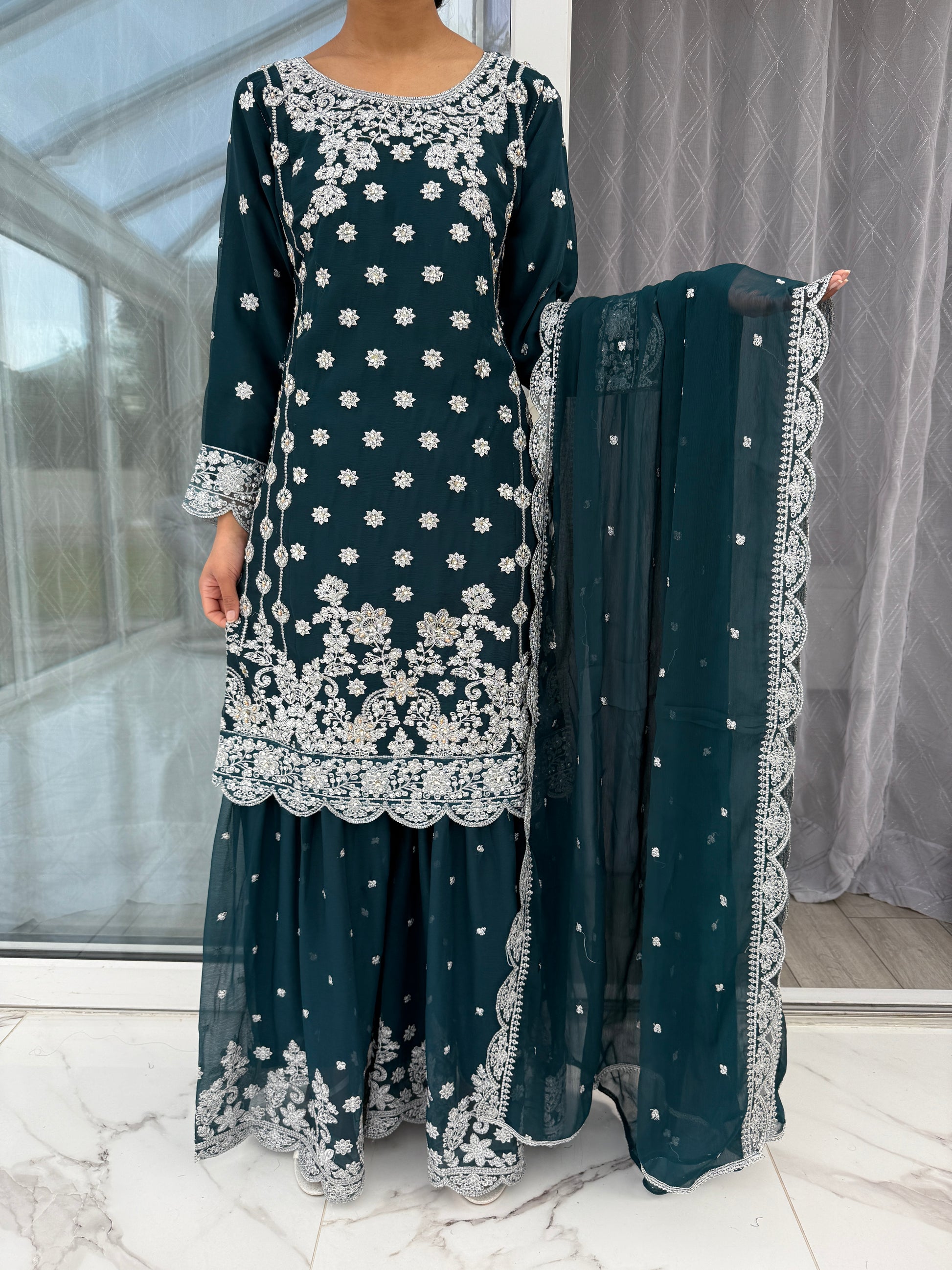 • Embroidered chiffon gharara
