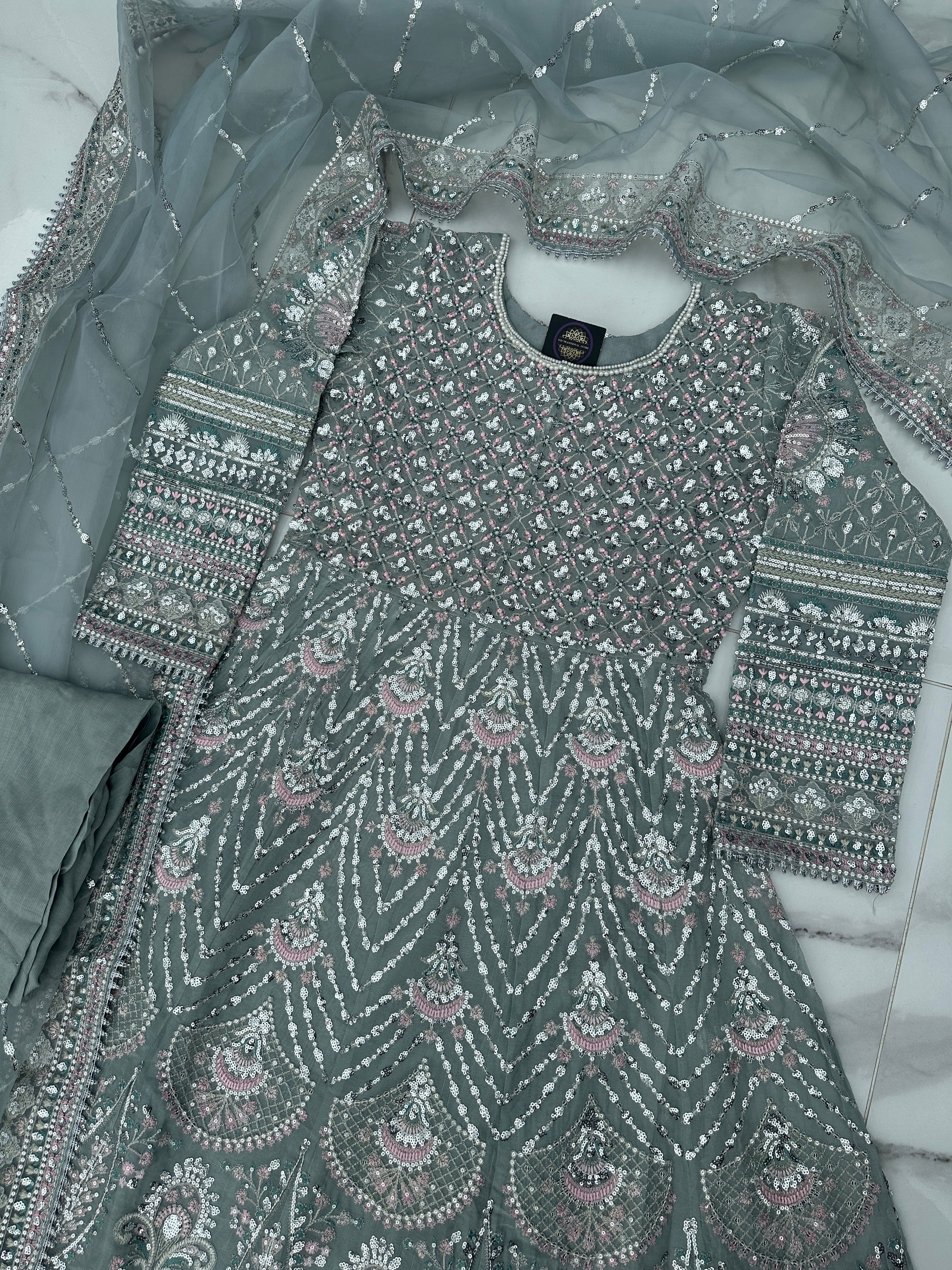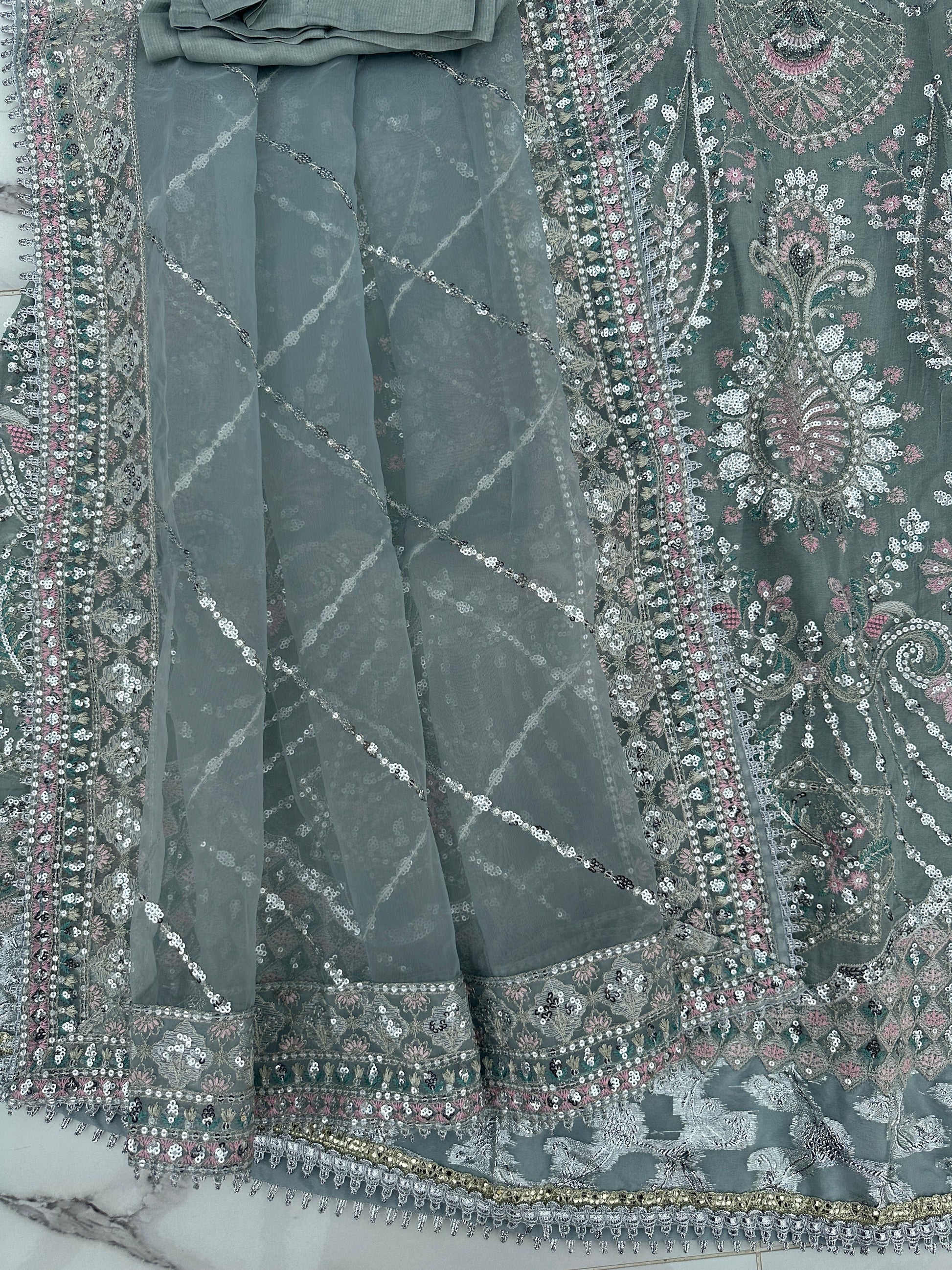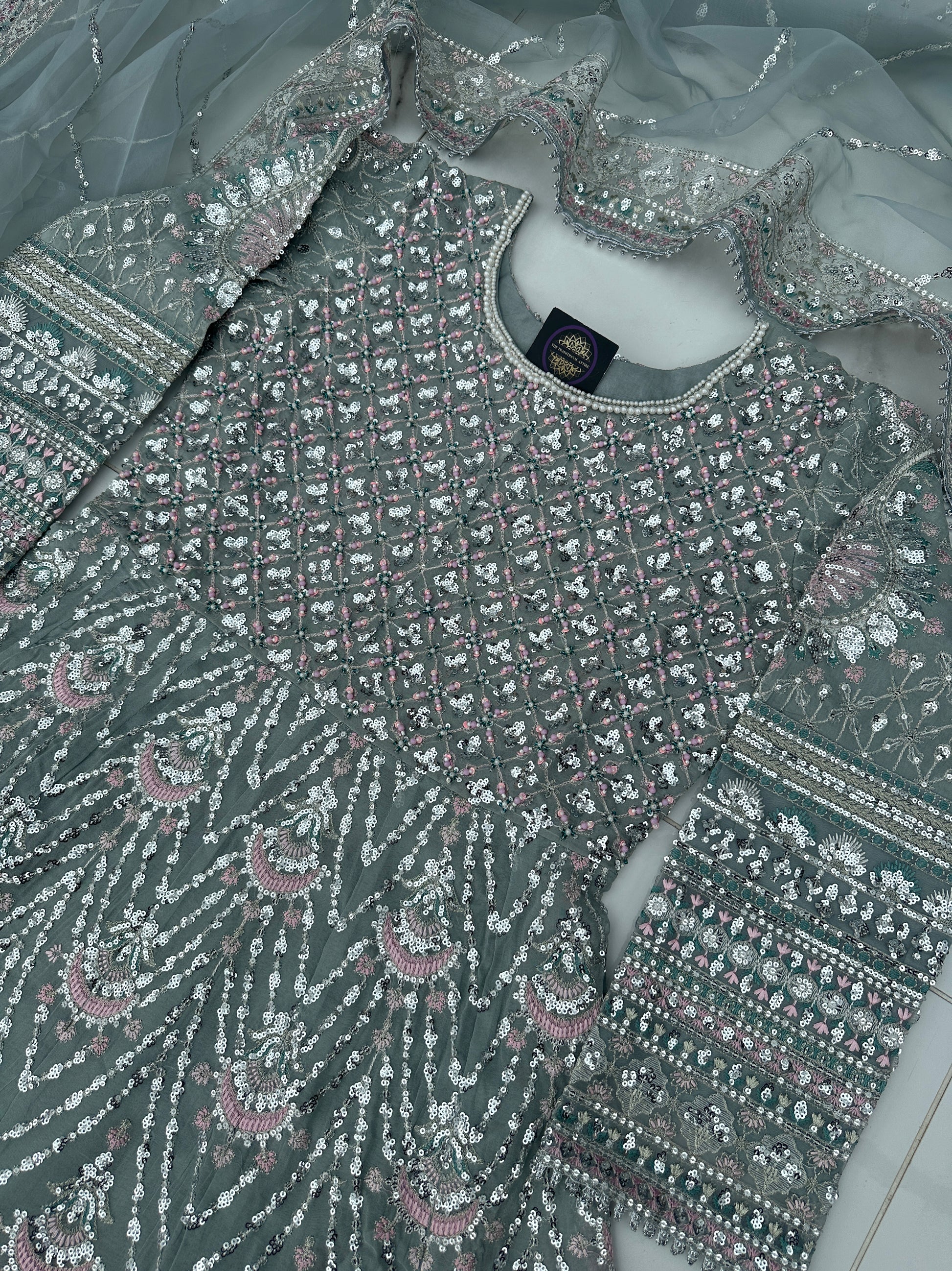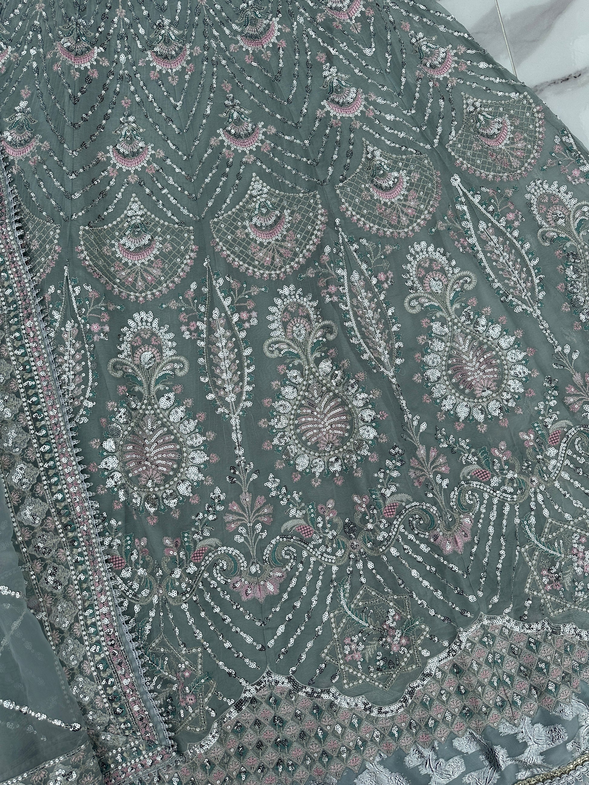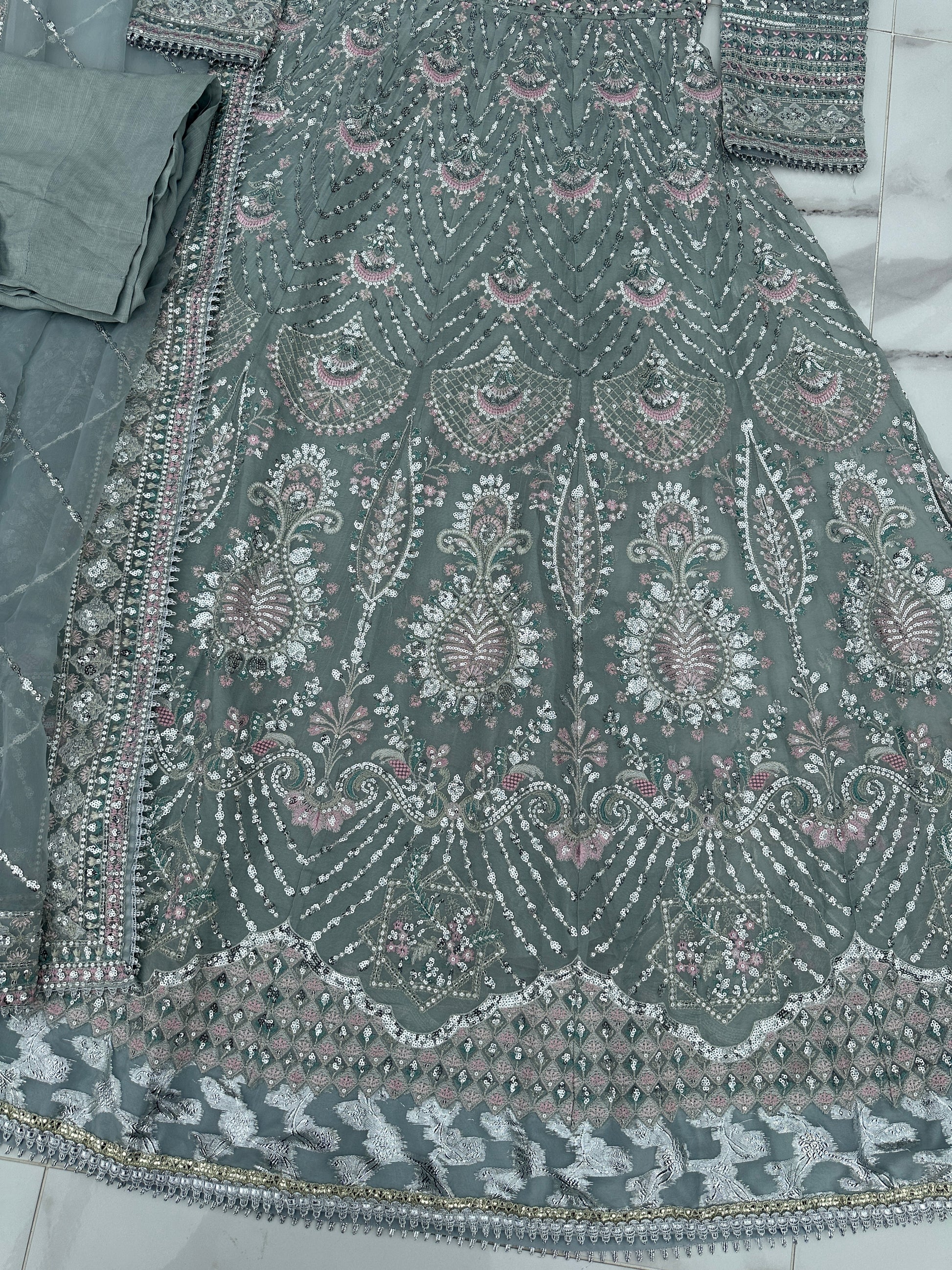 • Heavy front and back embroidered chiffon dress with handwork and sequins