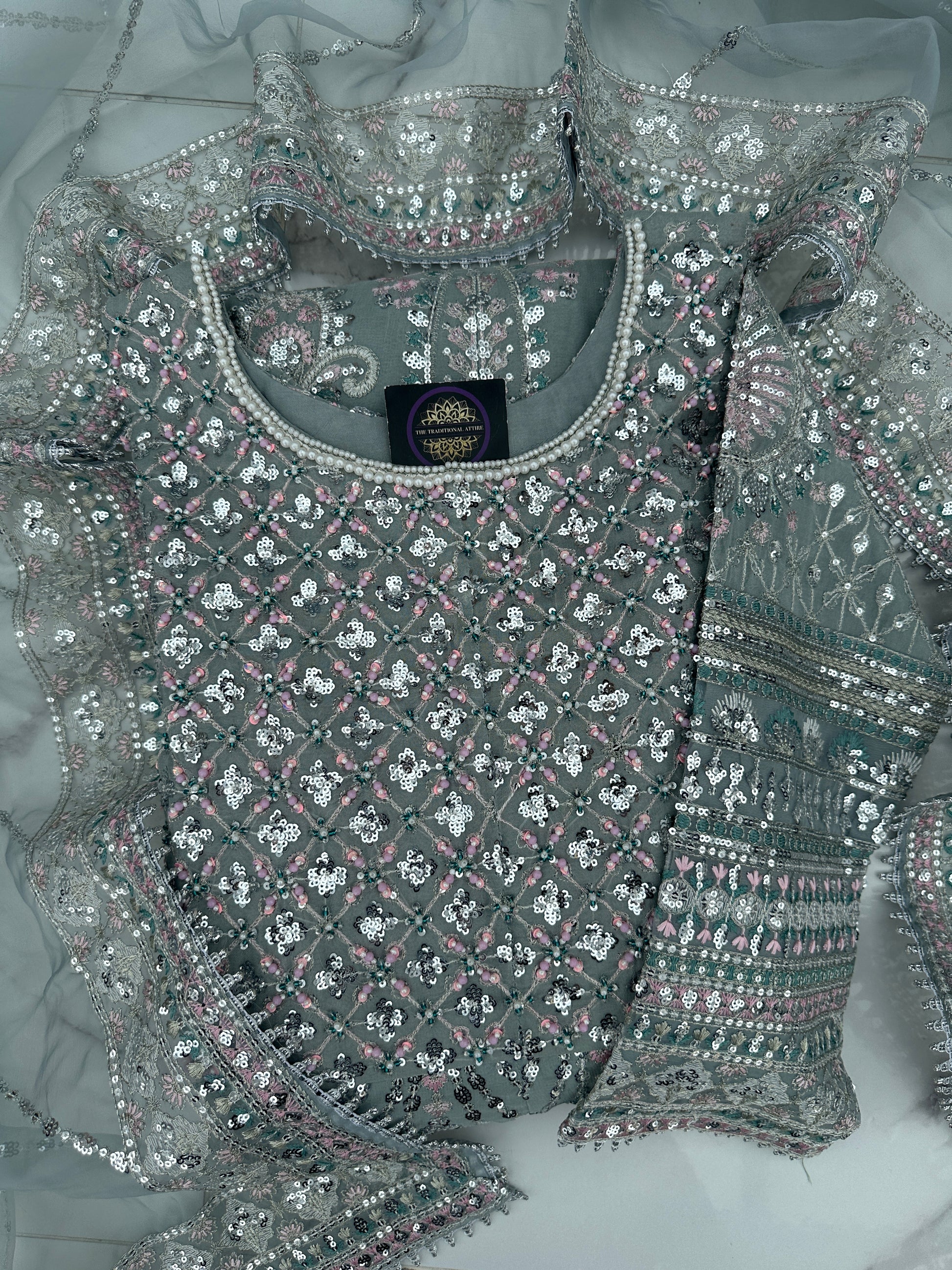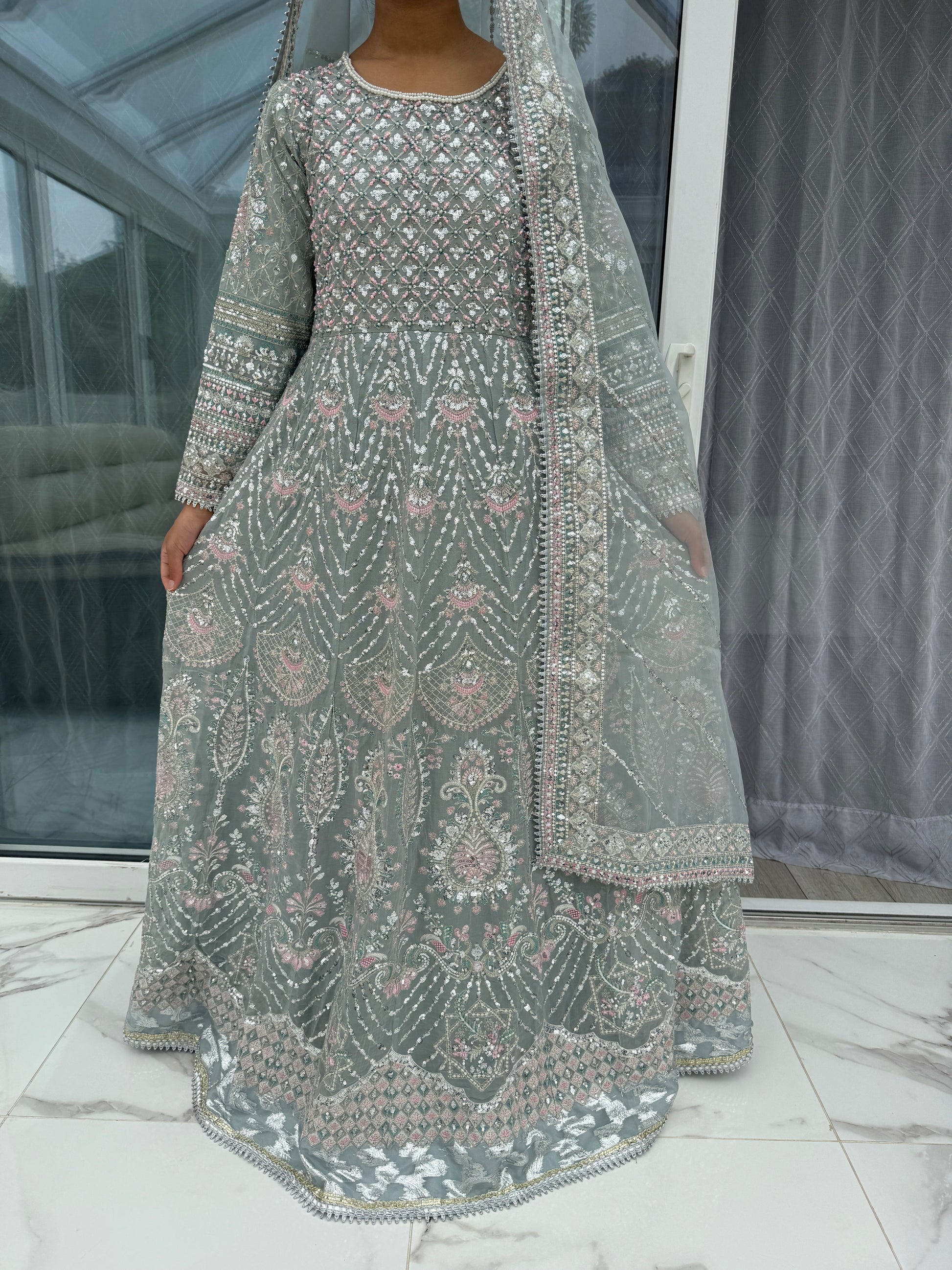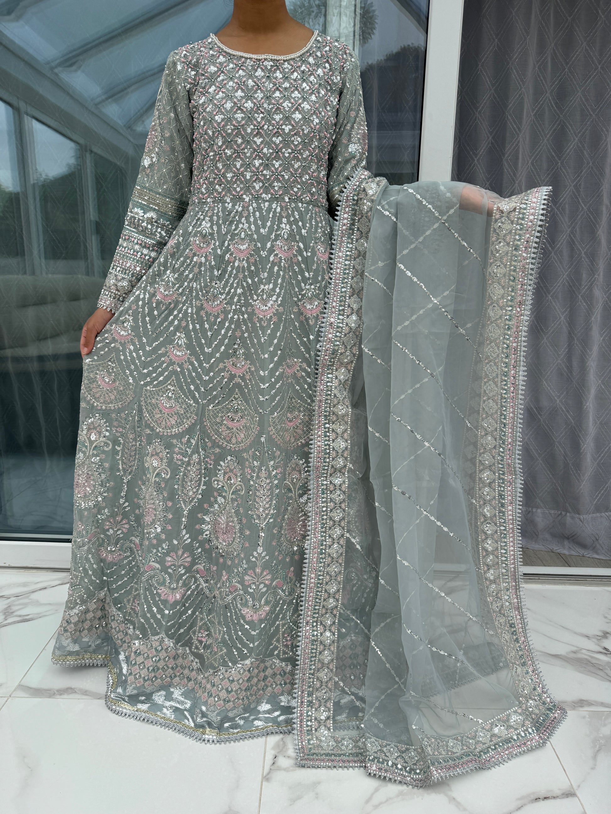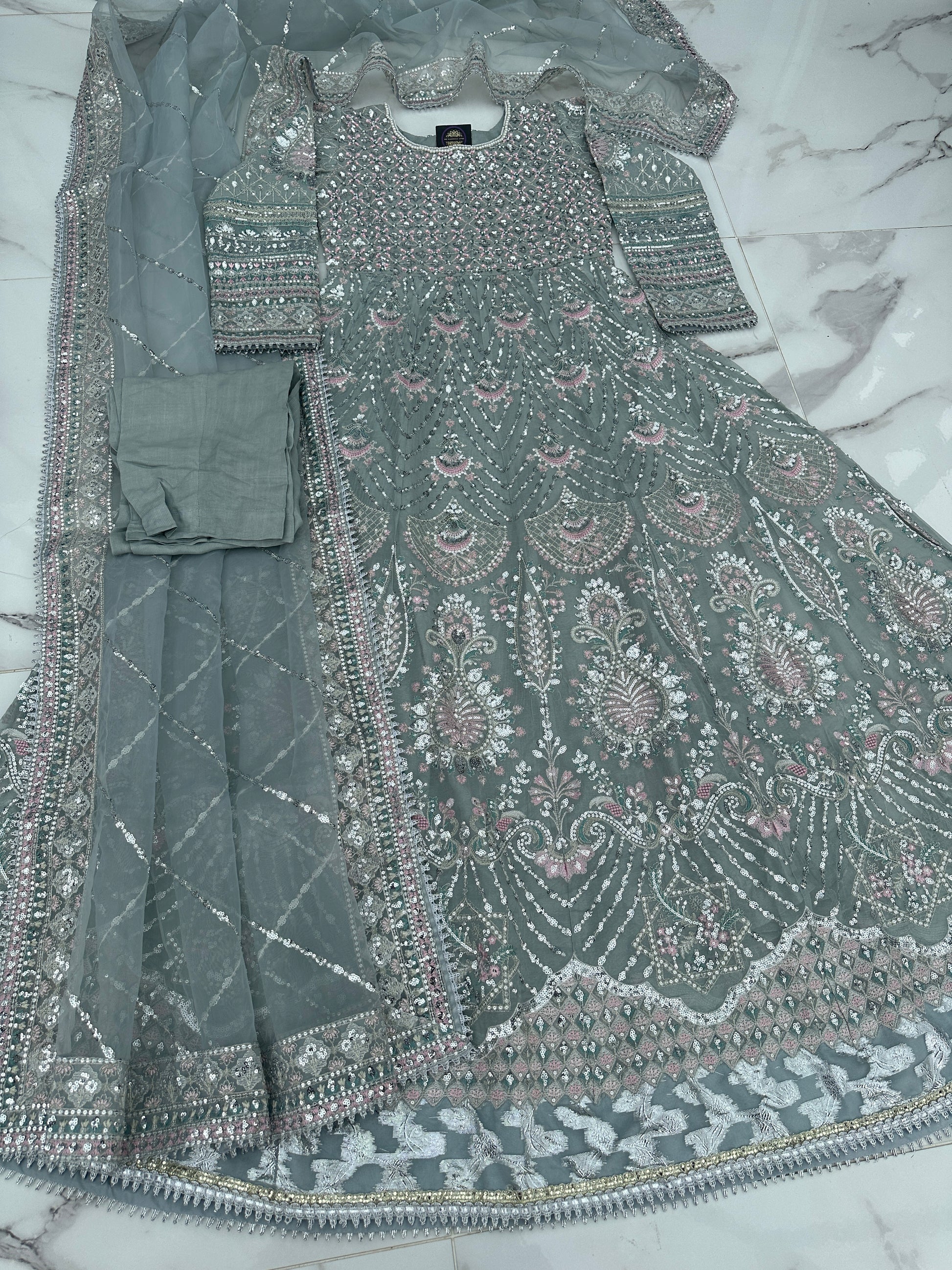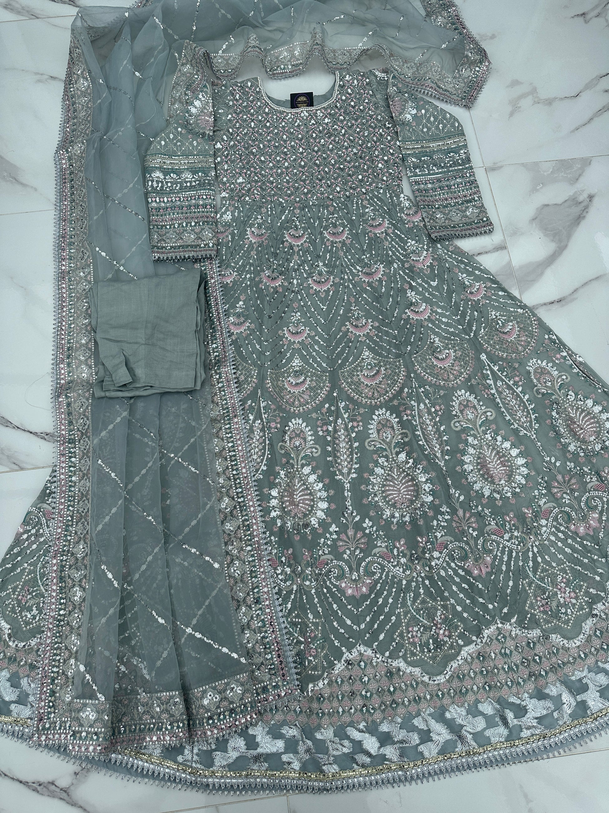 • Heavy front and back embroidered chiffon dress with handwork and sequins