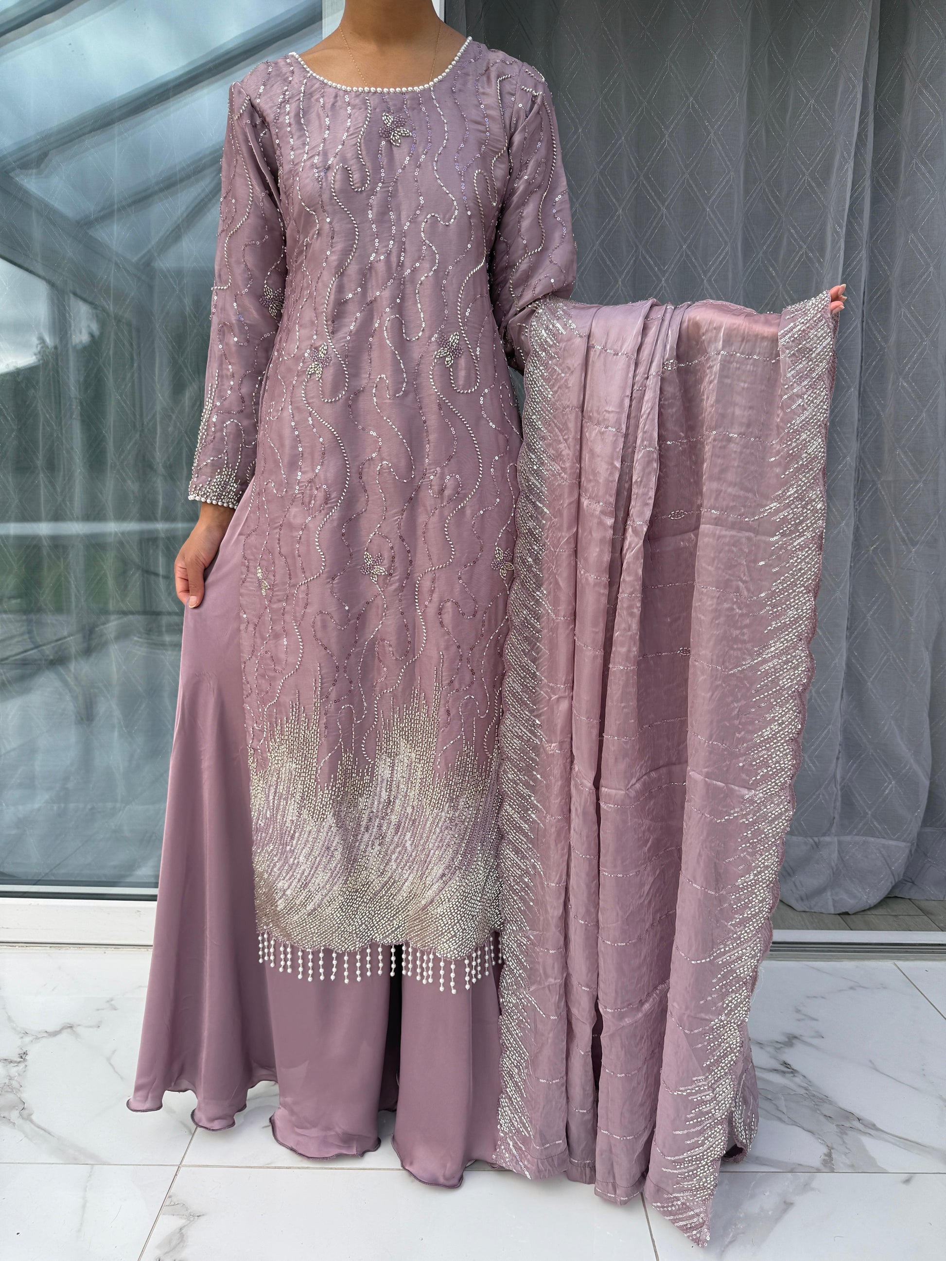 • Front and back Intricately embroidered silk gradient organza kameez with cutdana sequins, pearl embellishments and beads