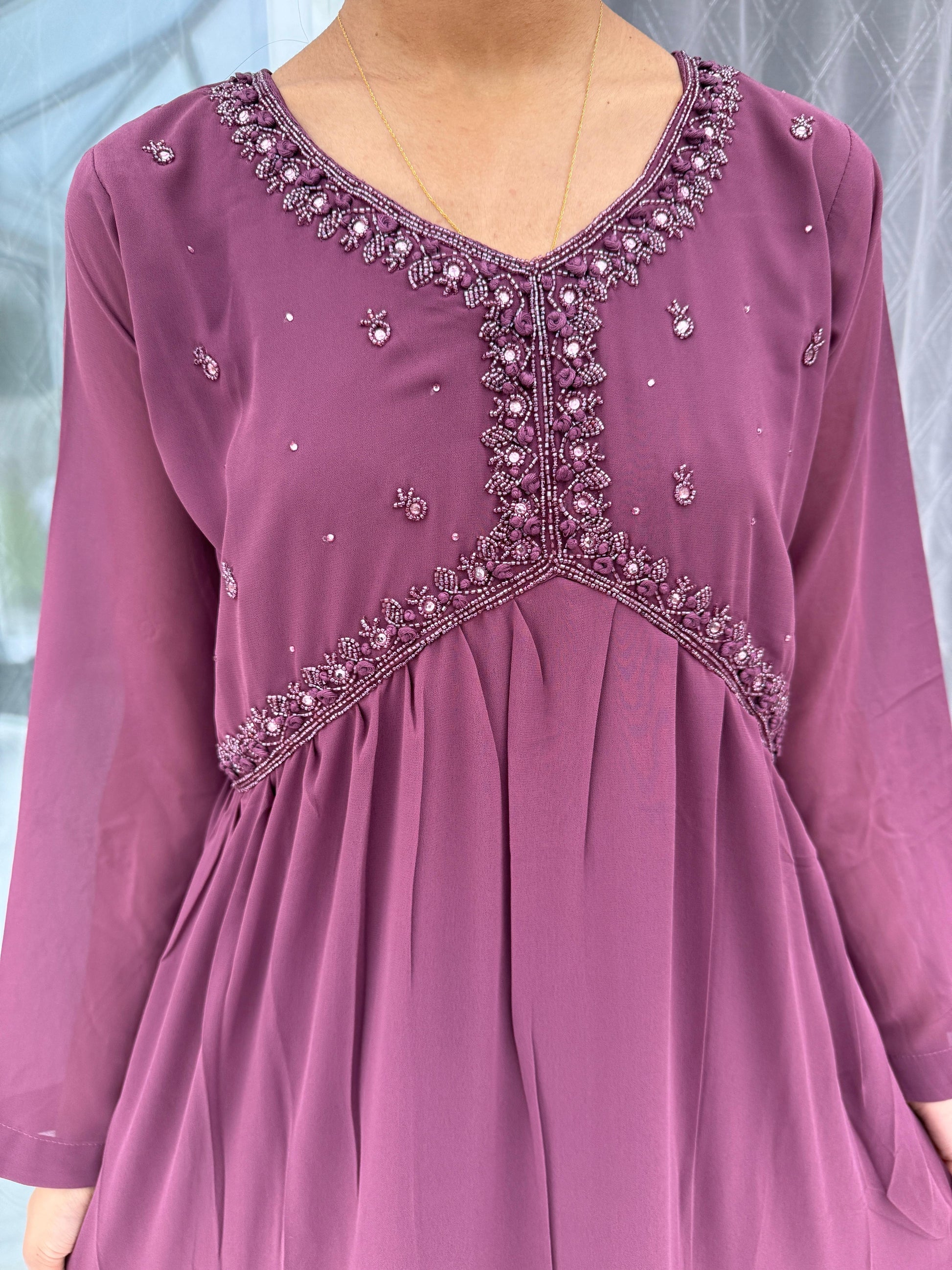 • Georgette maxi dress with beadwork