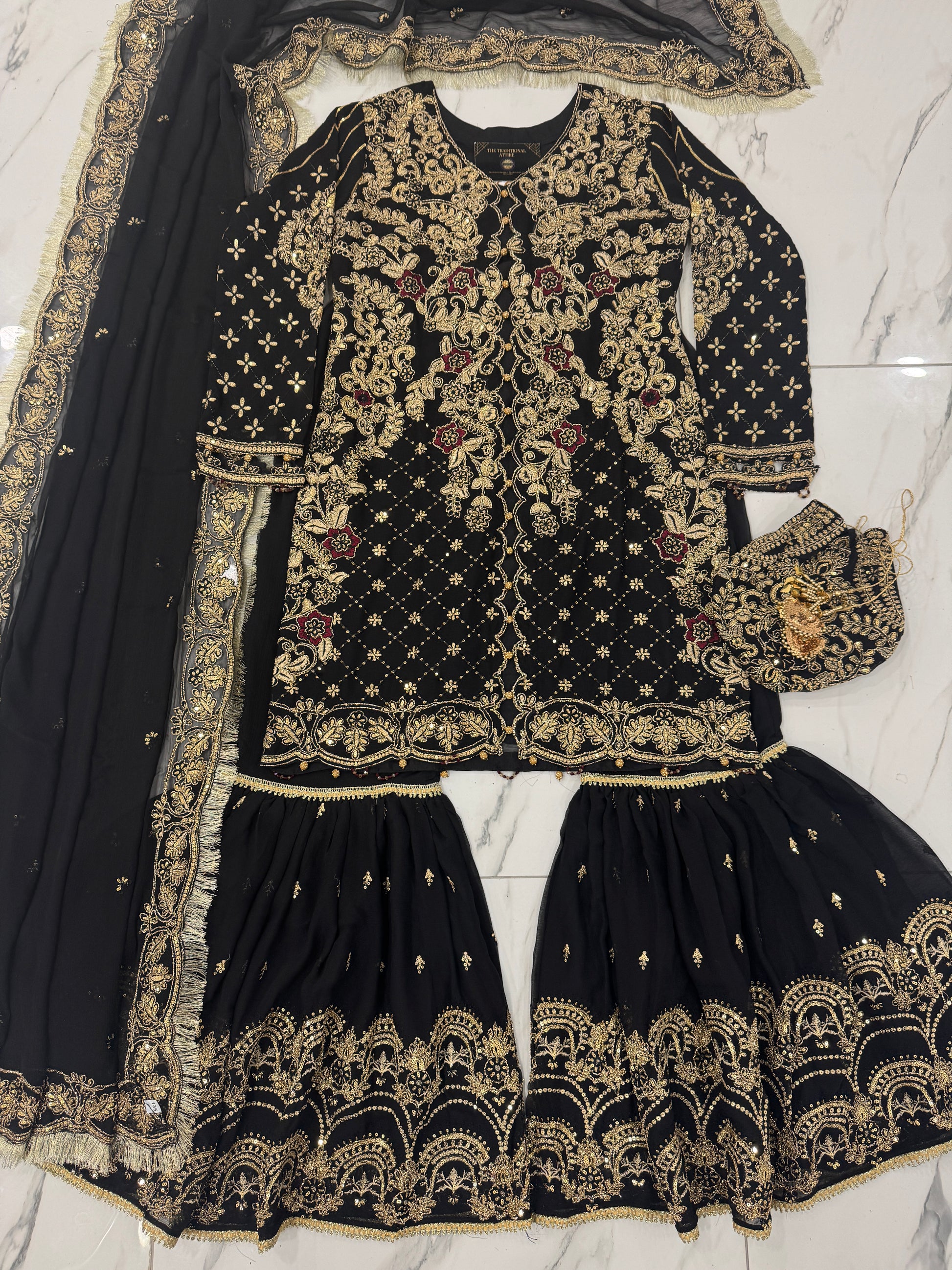• Embroidered farshi gharara