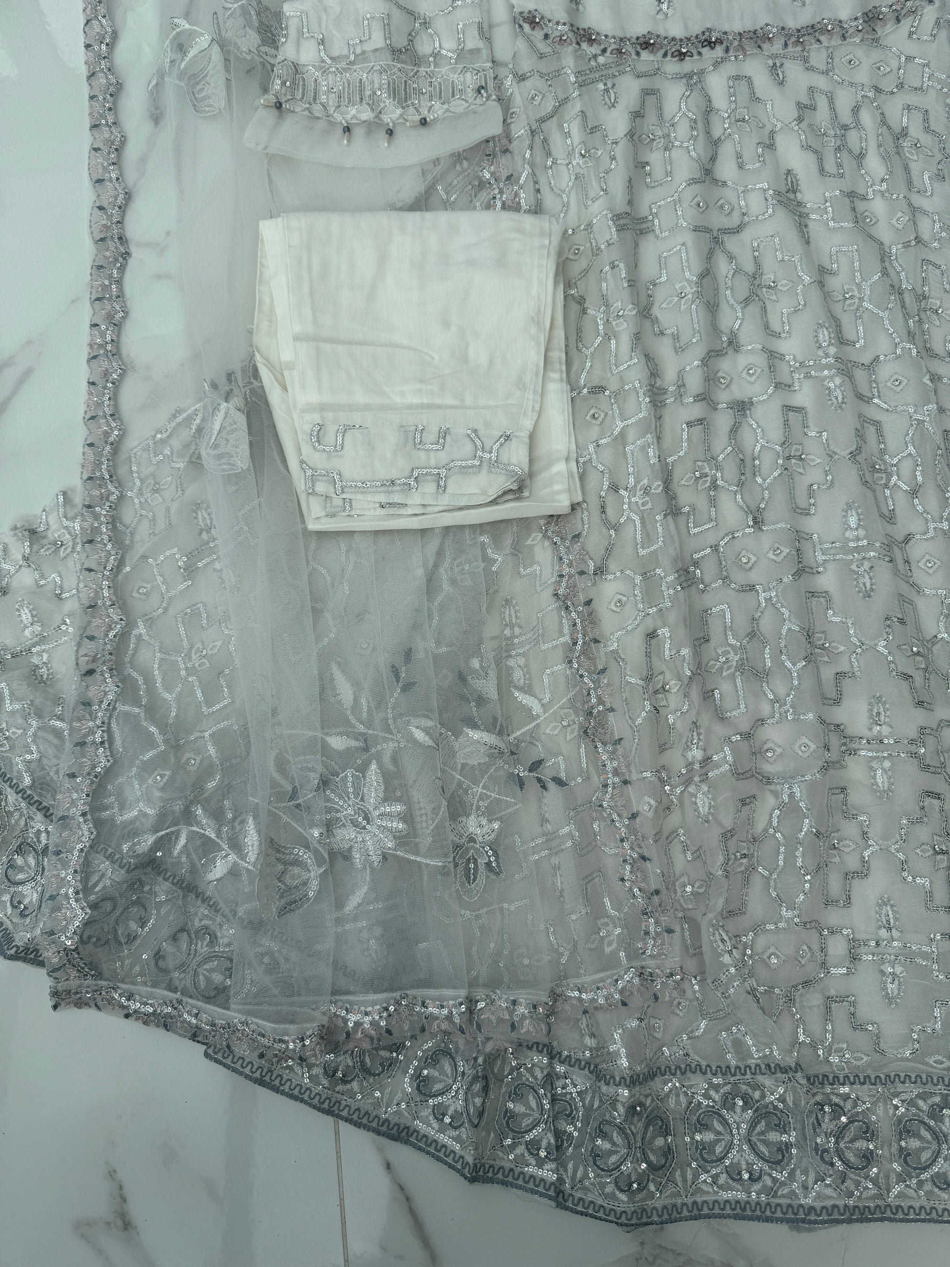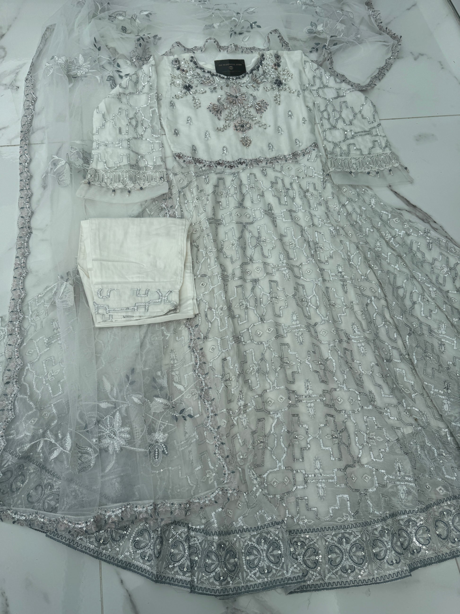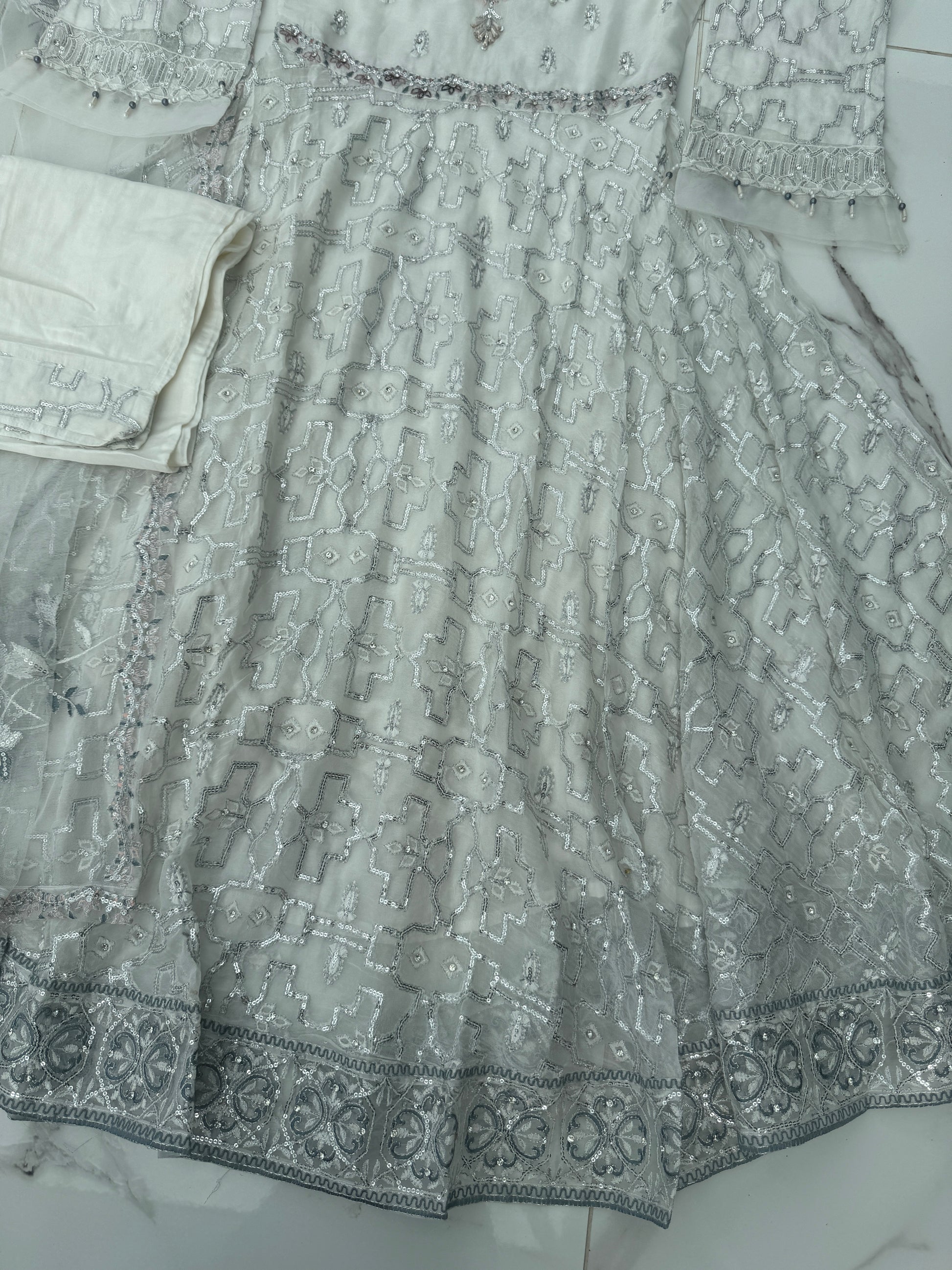 • Front and back embroidered chiffon dress with handwork and pearl embellishments