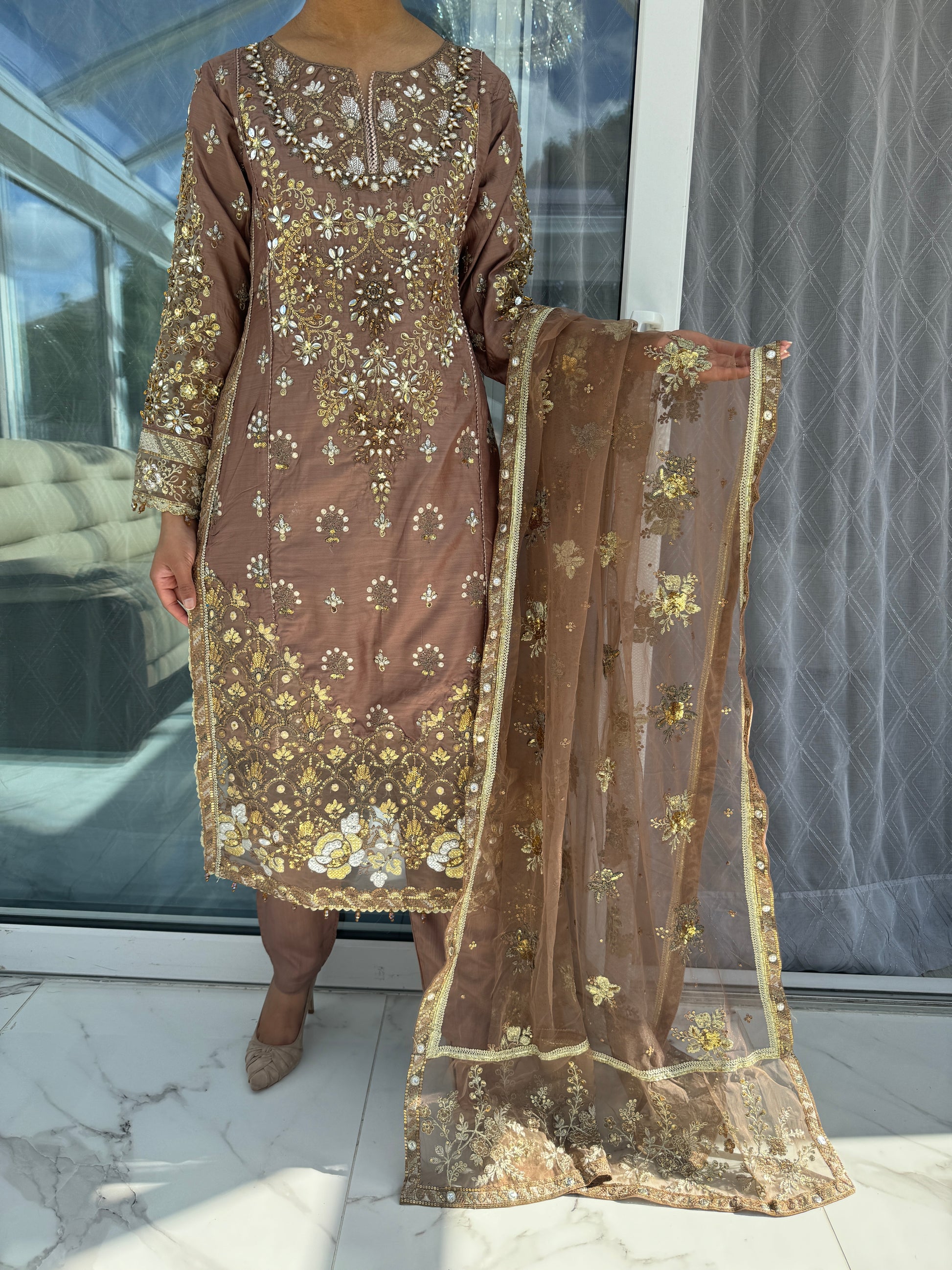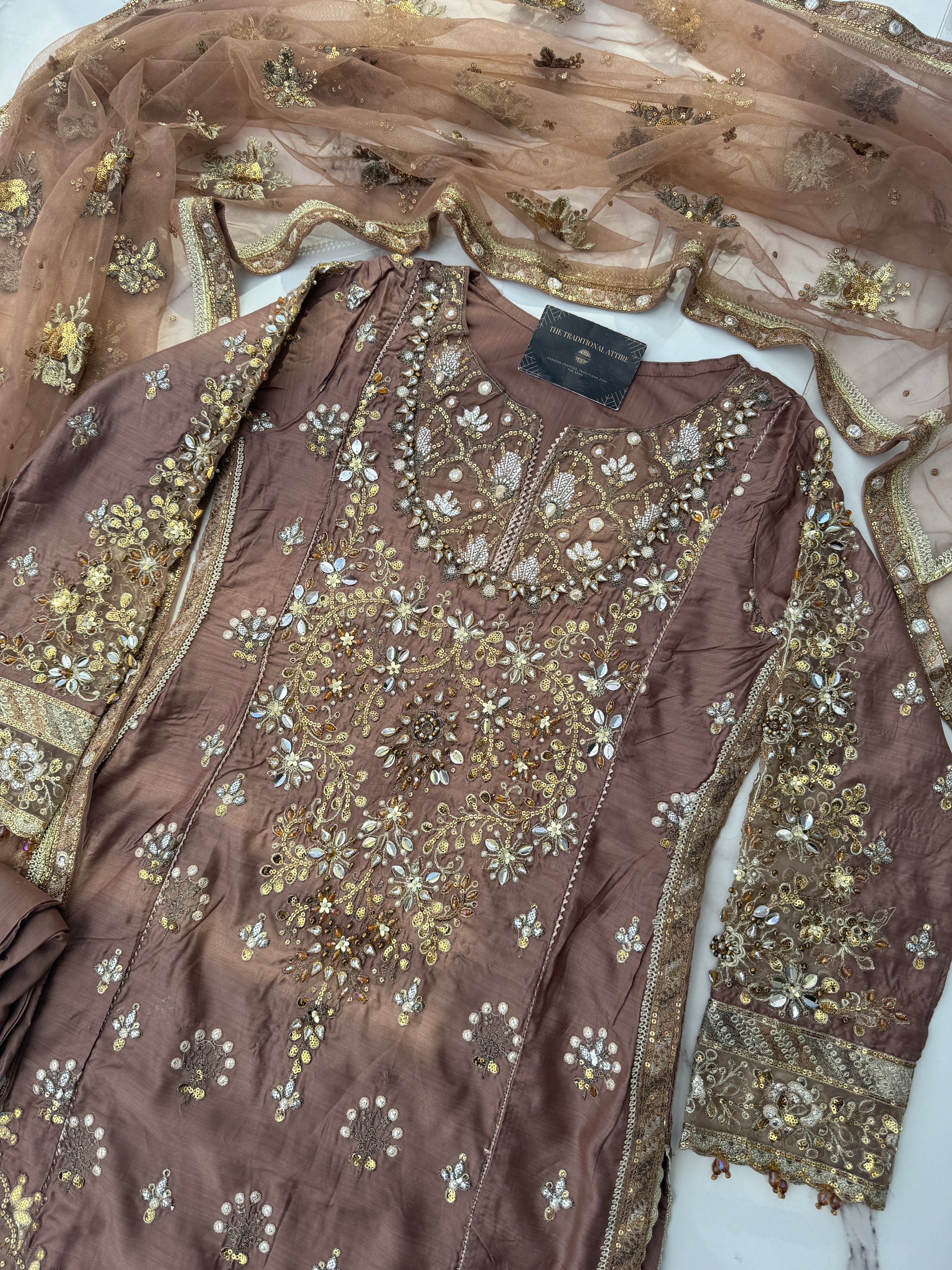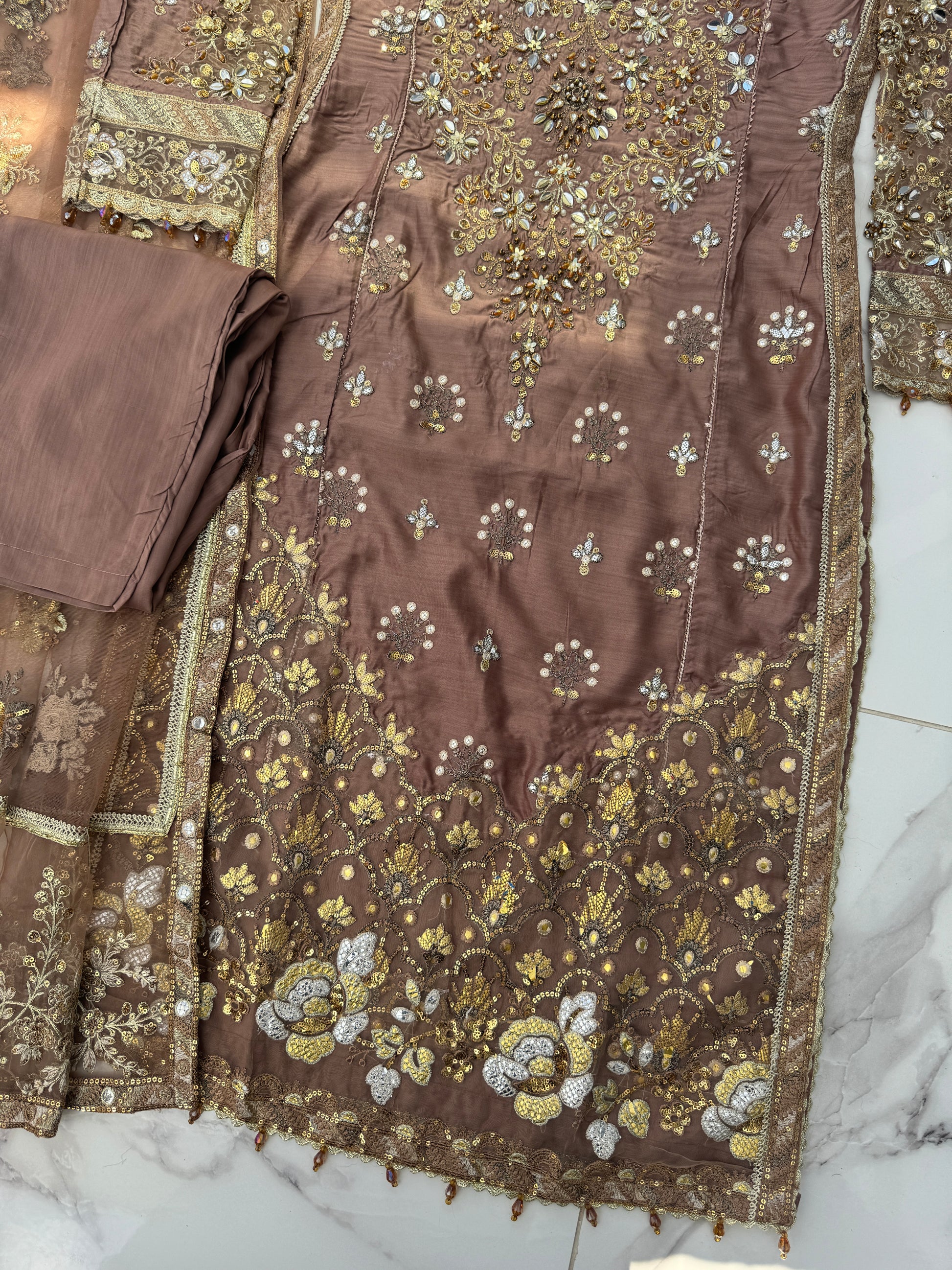 • Embroidered viscose kameez with handwork and sequins