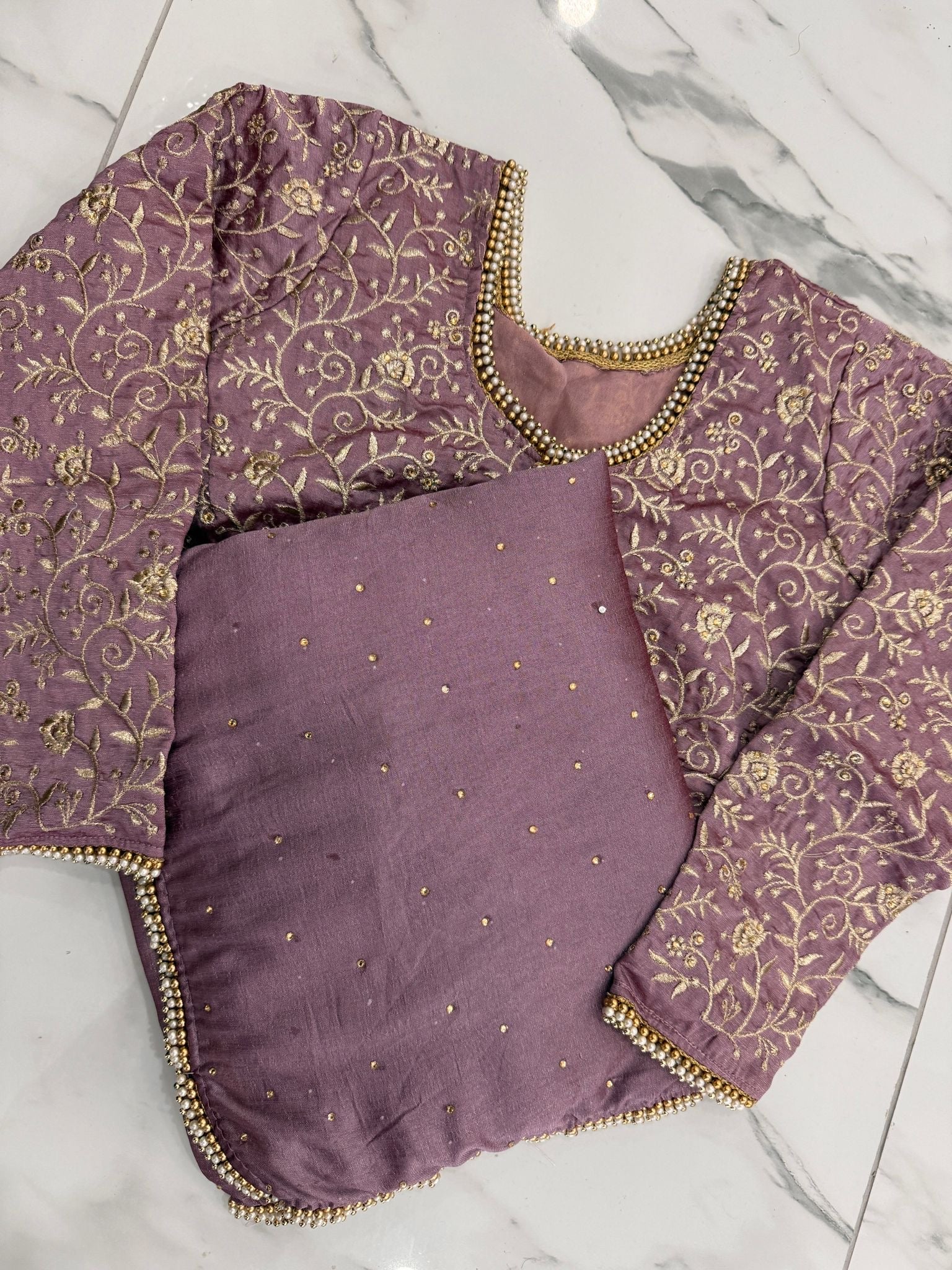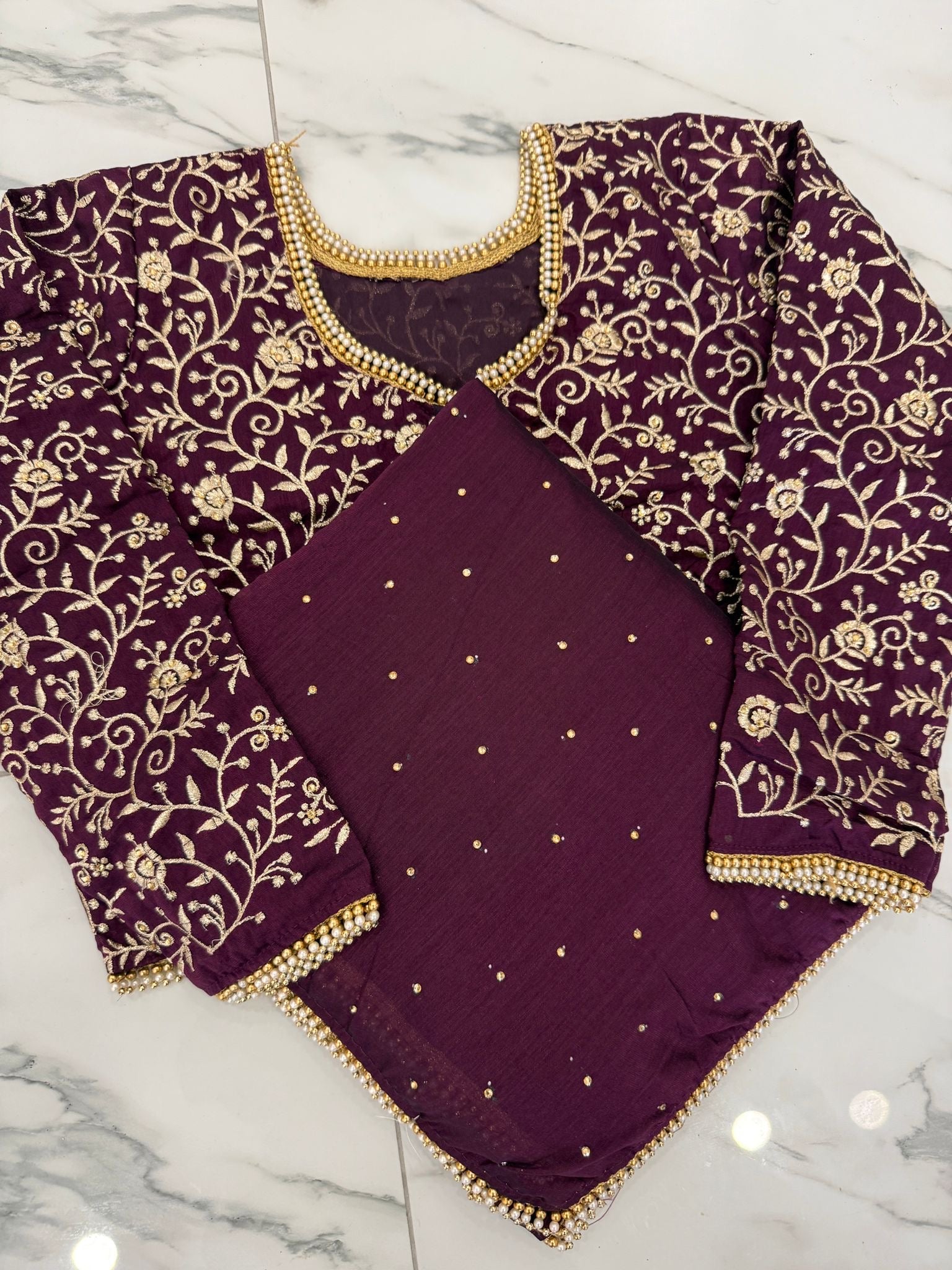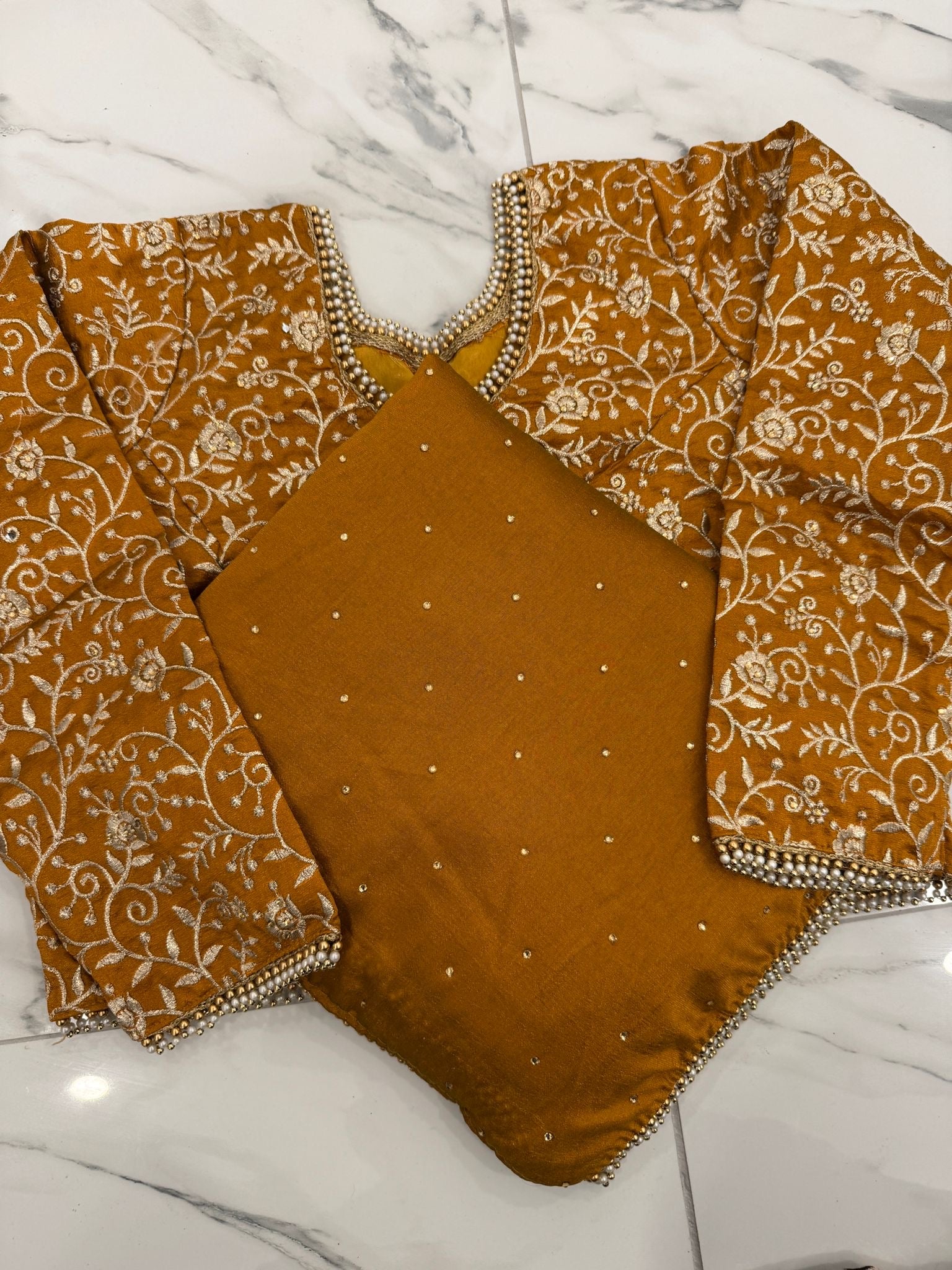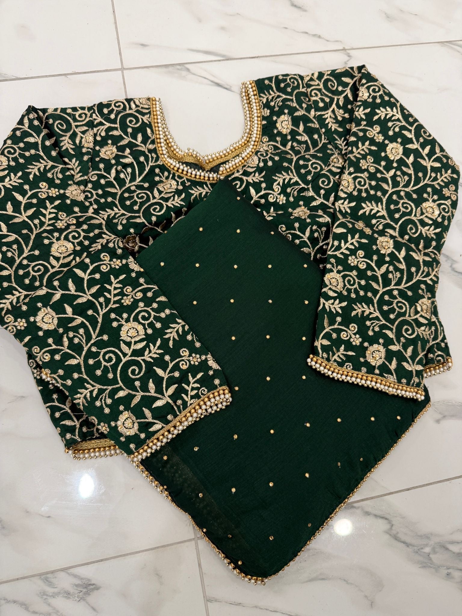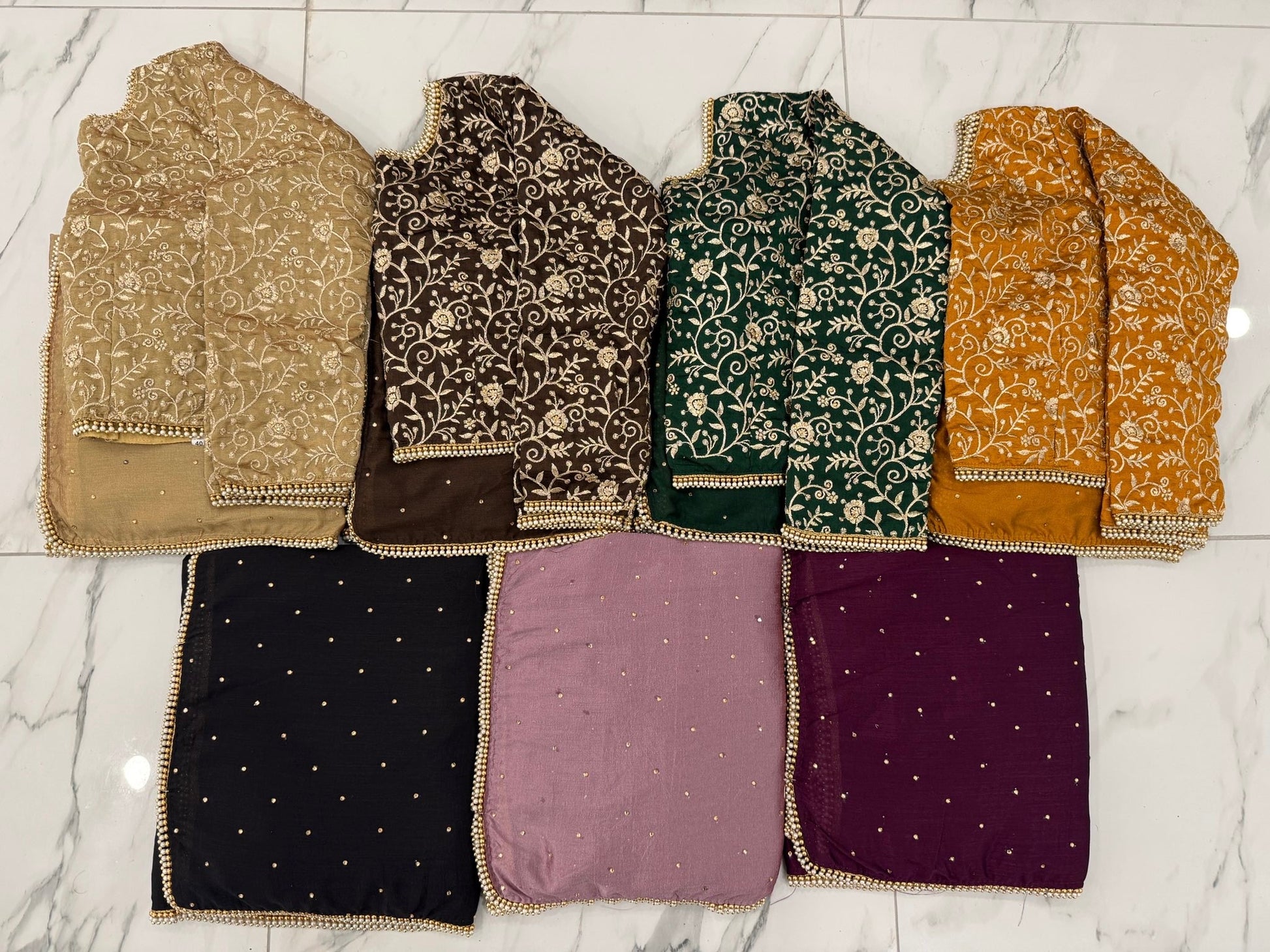 Add a touch of sparkle with this elegant diamanté saree, finished with a delicate pearl border. Paired with a heavy embroidered blouse, it’s perfect for special occasions, it drapes beautifully and comes in seven stunning colours to suit every style.