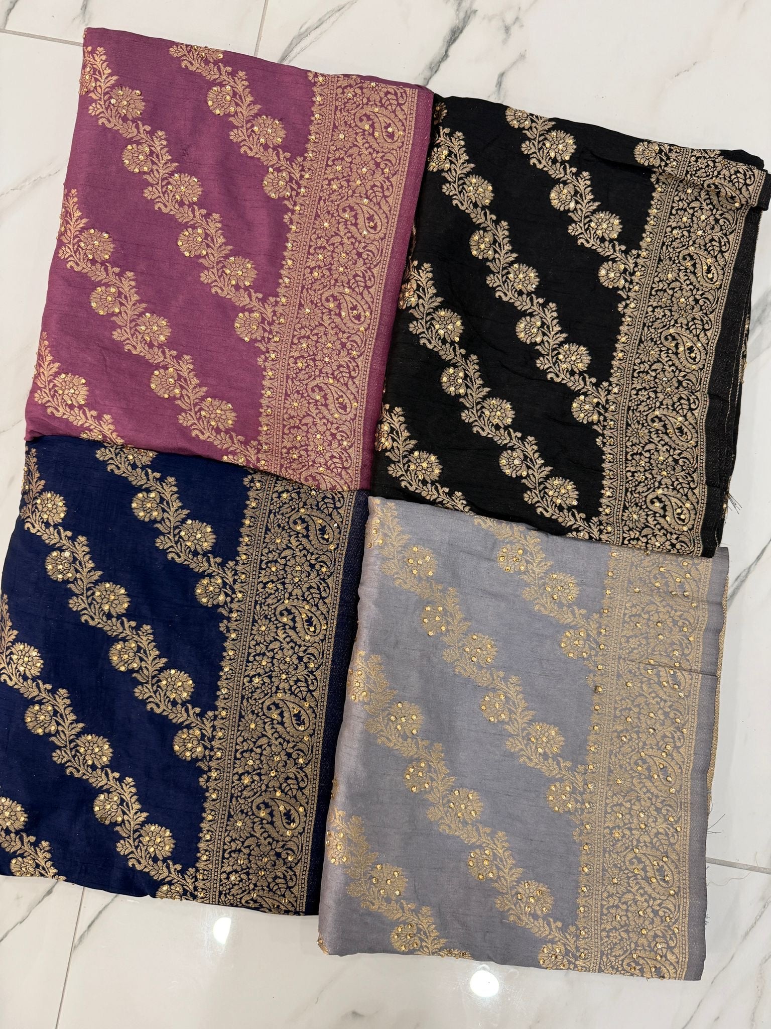Elevate your style with our luxurious Banarasi Katan saree, featuring diamanté that adds a touch of sparkle to its rich, traditional weave. Perfect for weddings and festive occasions, this saree blends timeless craftsmanship with refined elegance.