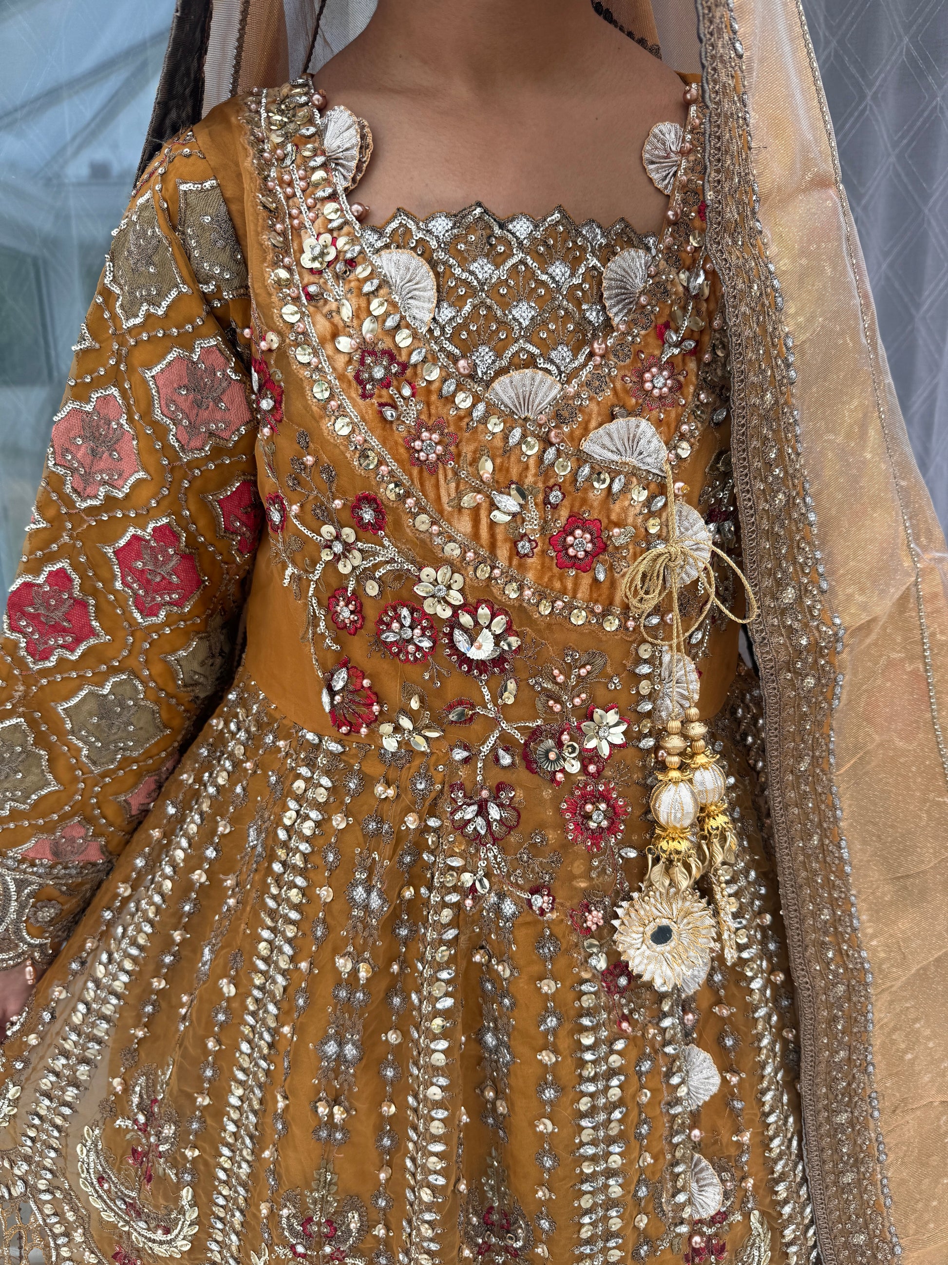 • Heavily embroidered organza dress with pearls, beadwork, intricate stone handwork and detailed cutwork.