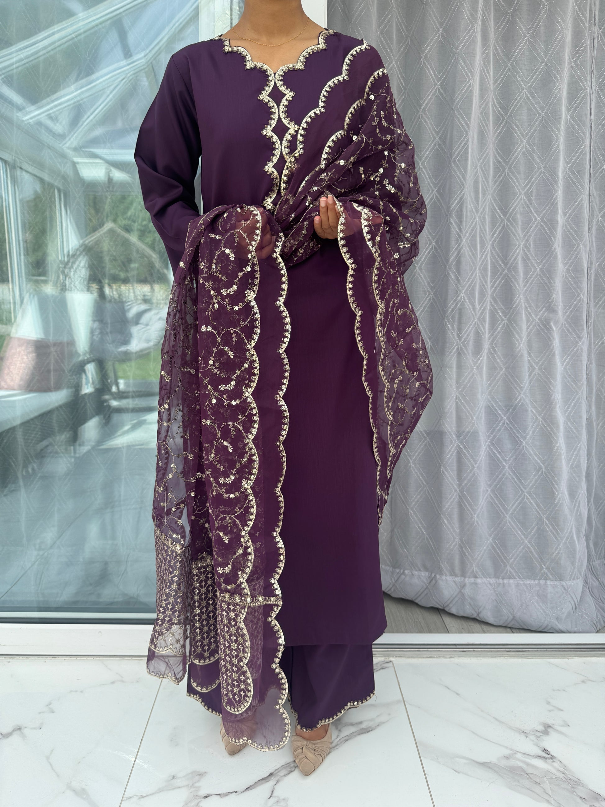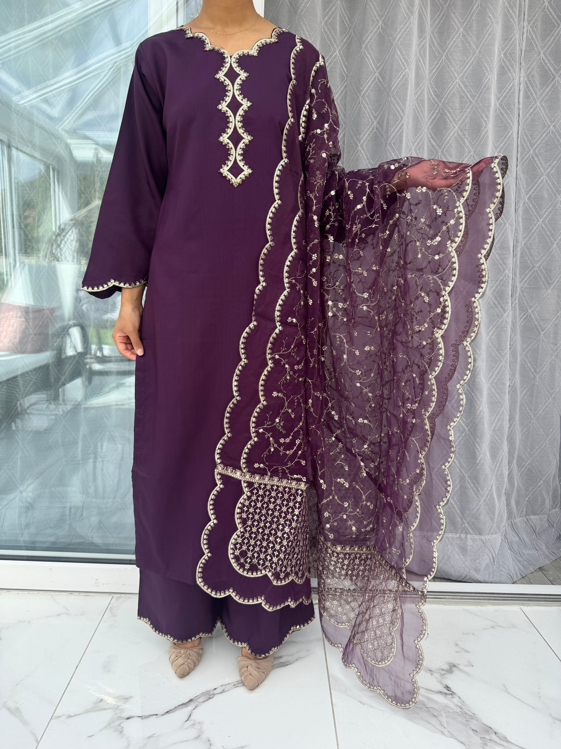 • Viscose kameez with Zari embroidery and sequins