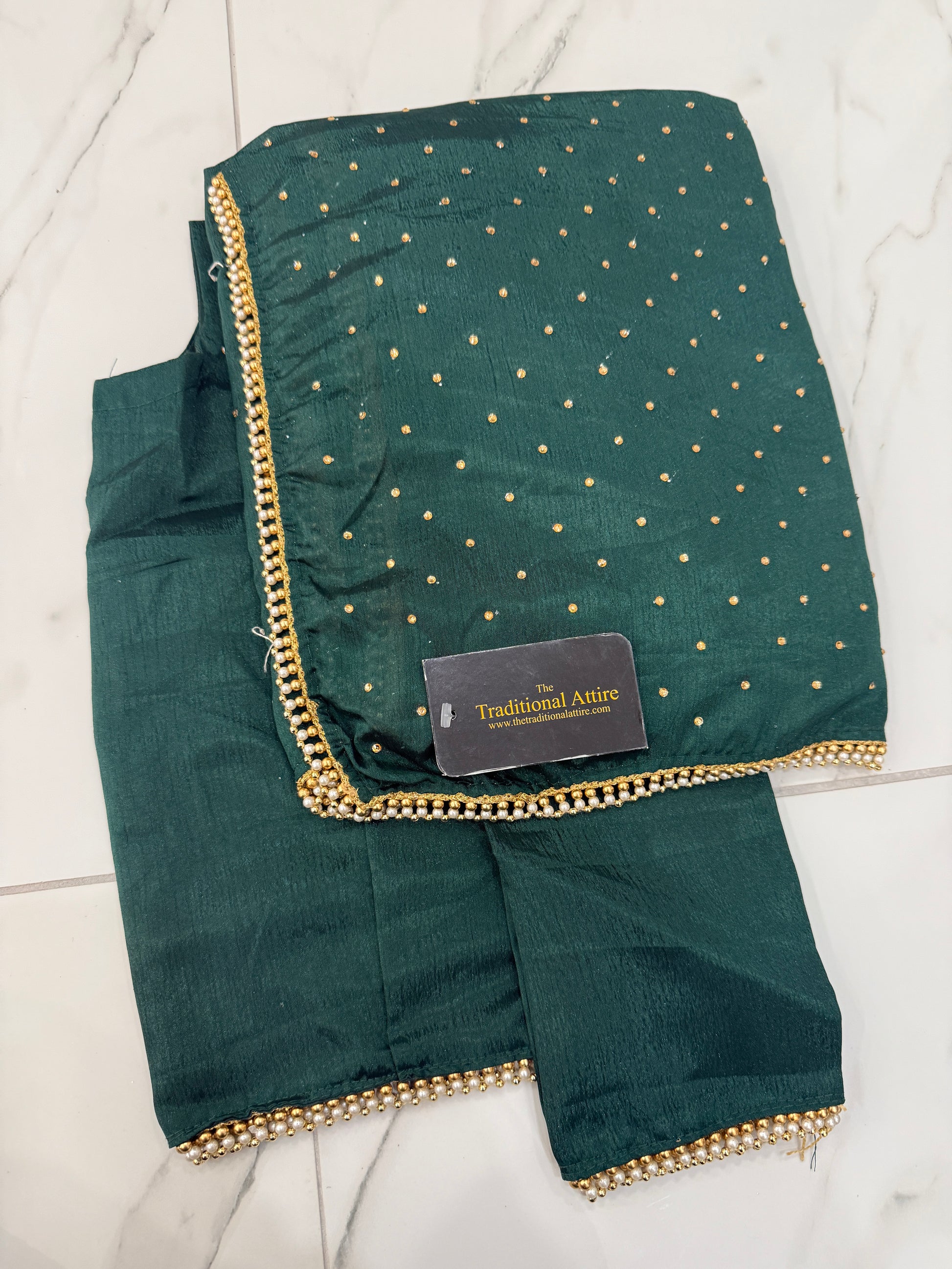 Add a touch of sparkle with this elegant diamanté saree, finished with a delicate pearl border. Perfect for special occasions, it drapes beautifully and comes in eight stunning colours to suit every style.