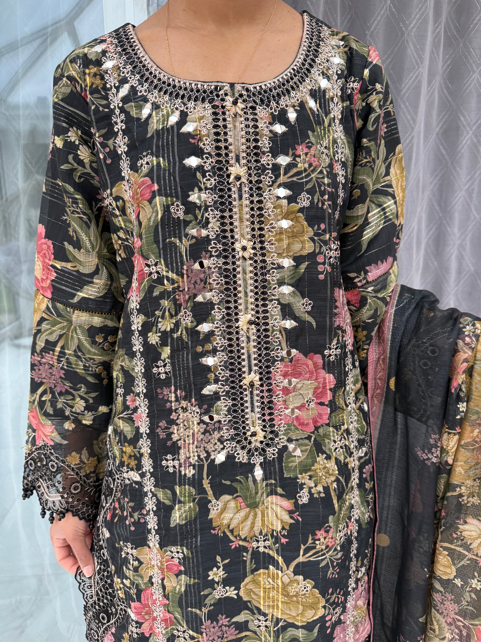 • Embroidered and printed premium monar kameez with mirror, sequin and lace detailing finished with pearl tassels