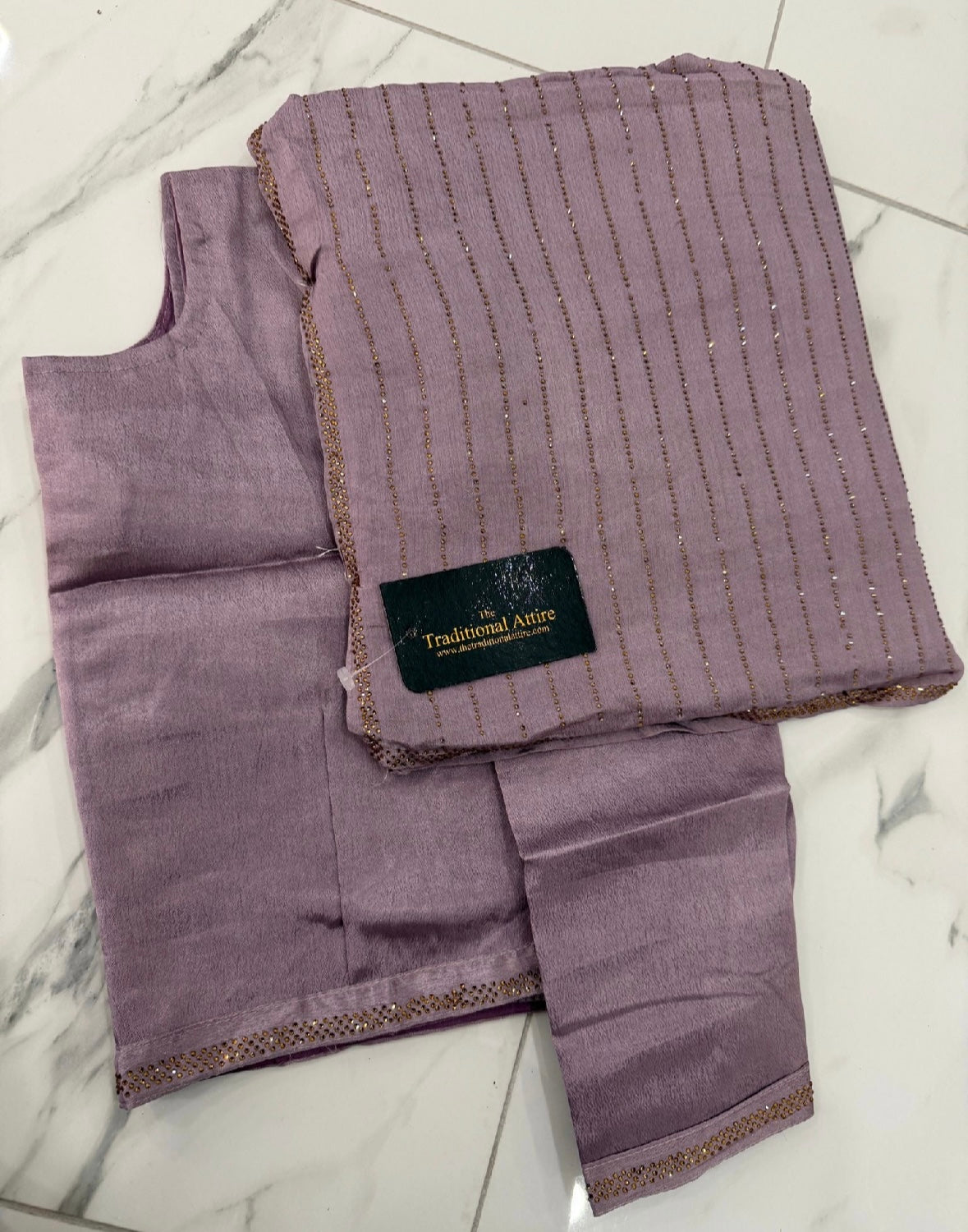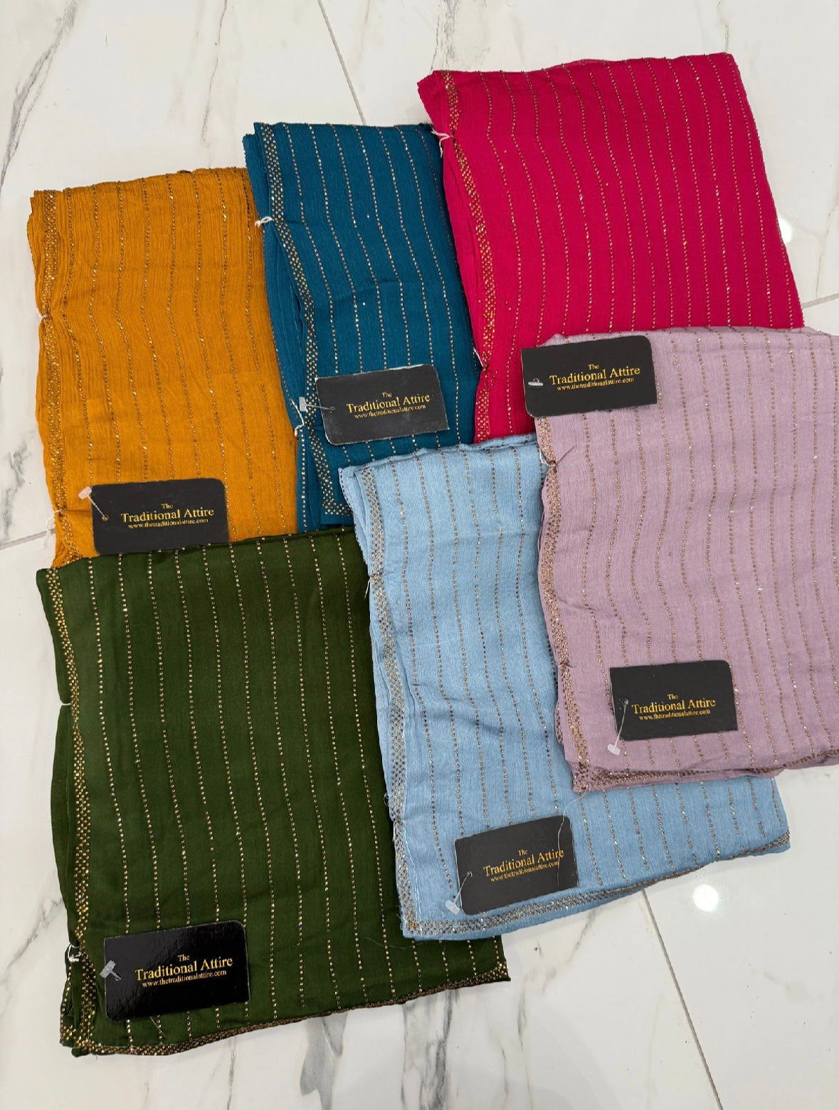 Embrace timeless elegance with this stunning saree adorned with delicate diamanté detailing - available in 6 colours. Crafted to perfection, the saree exudes refined charm with its graceful drape and subtle shimmer.