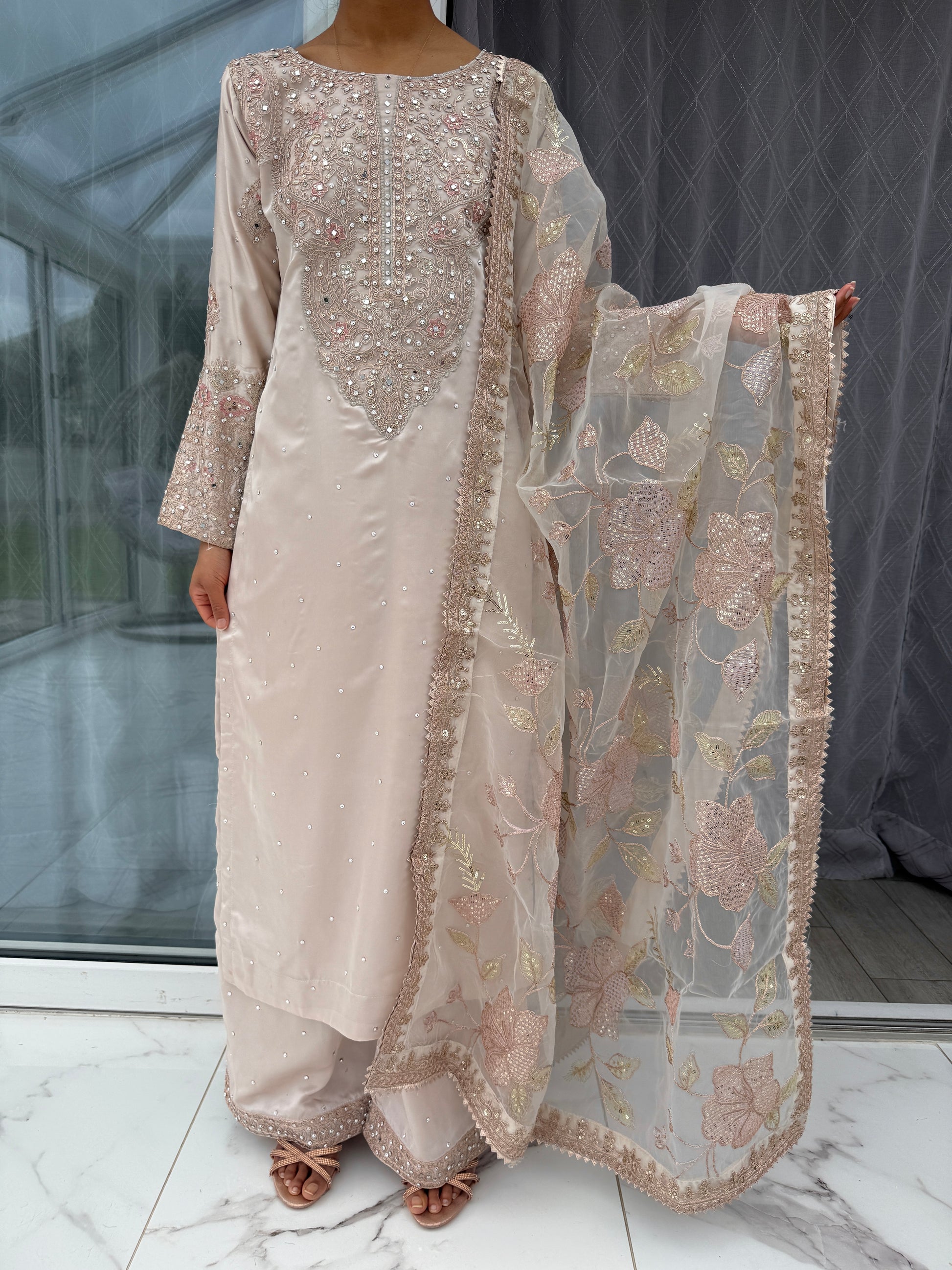 • Intricately embroidered organza duppata