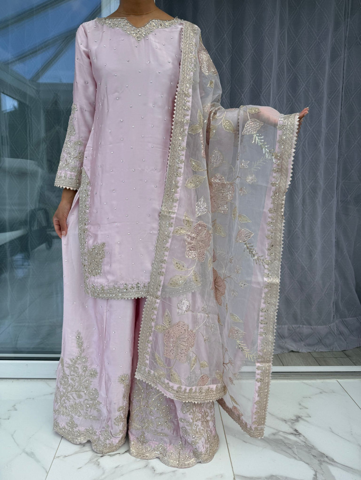• Fully embroidered organza dupatta