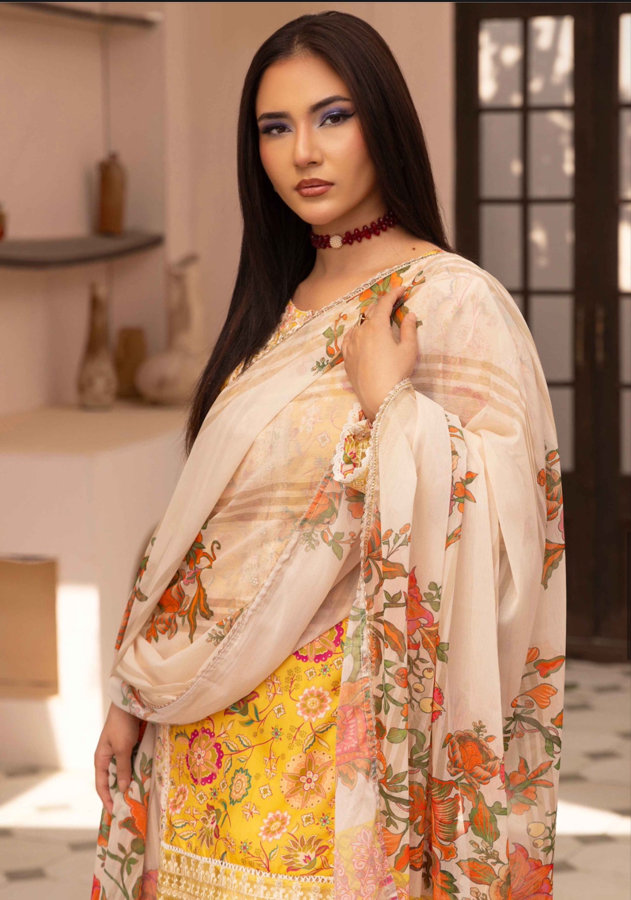 • Printed and Embroidered premium viscose kameez with sequin detailing, neckline embellishments and tassels