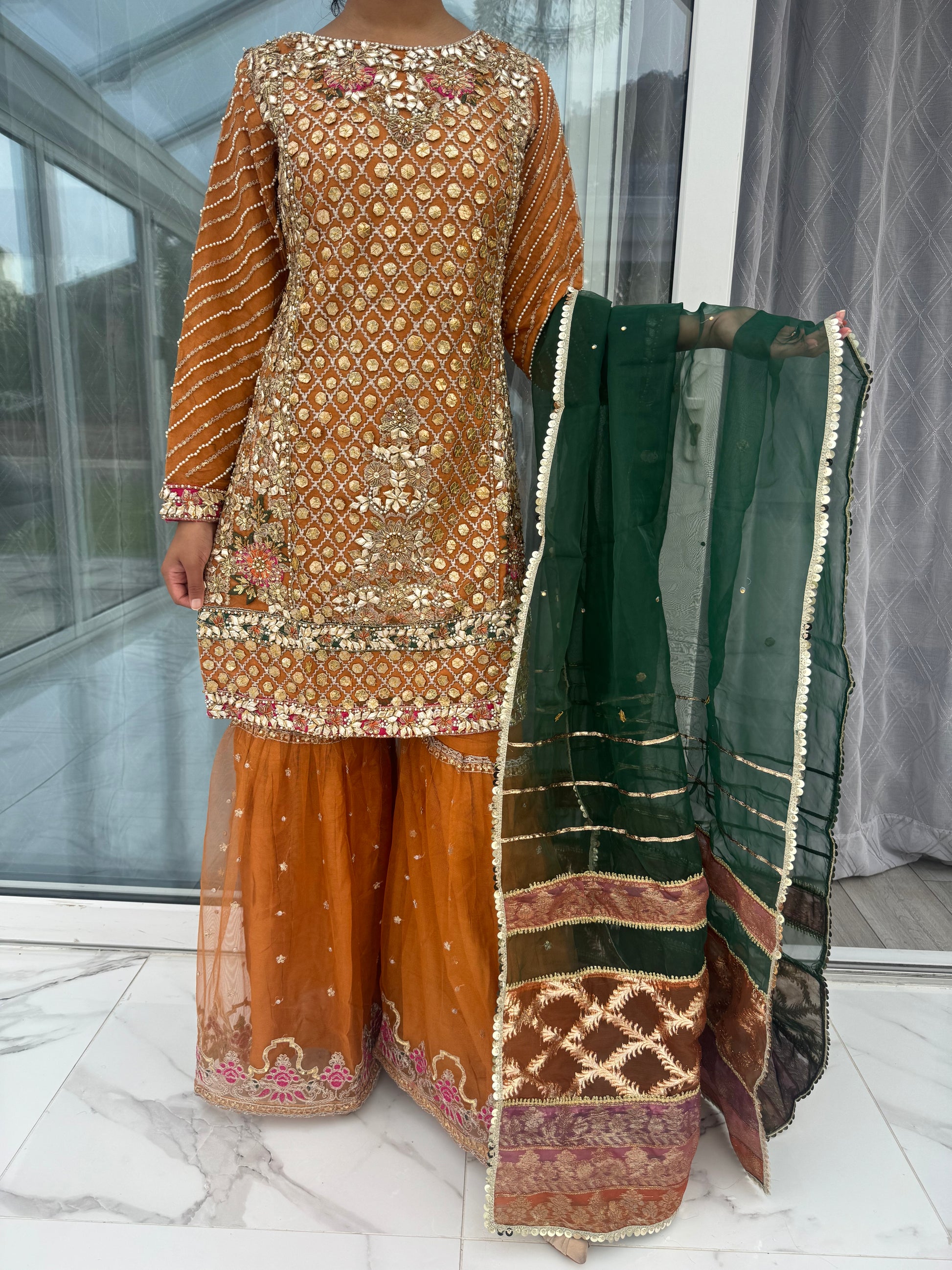 • Embroidered net gharara