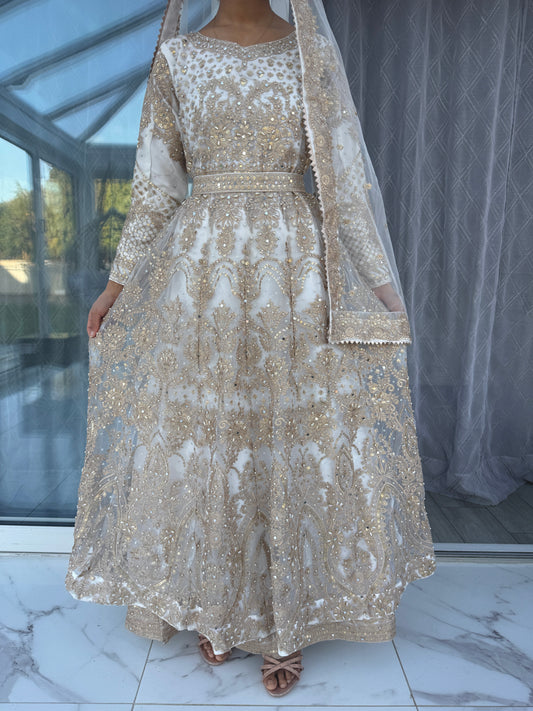 NOOR UL AIN - Embroidered net maxi dress Faiza Saqlain Inspired