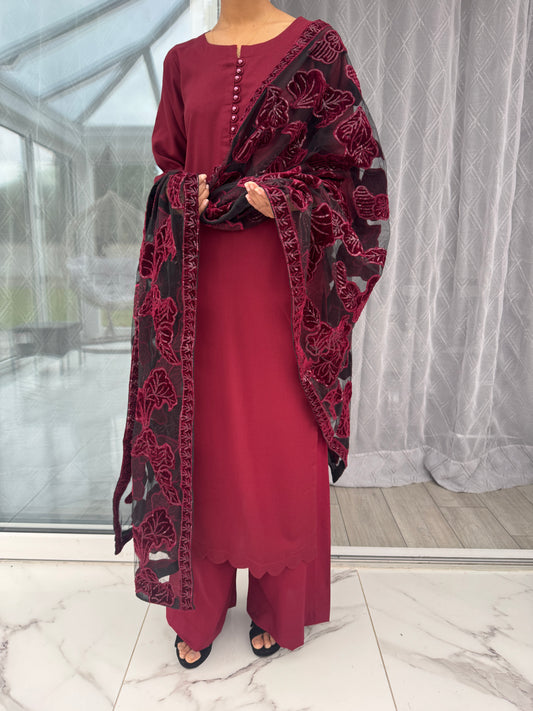 NURA SIMRANS - Dhanak readymade outfit with laserkari velvet net duppatta