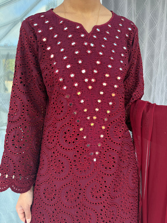FAYZA - EMBROIDERED LINEN CHIKAN KARI KAMEEZ WITH PLAZO